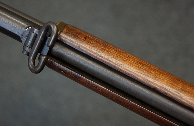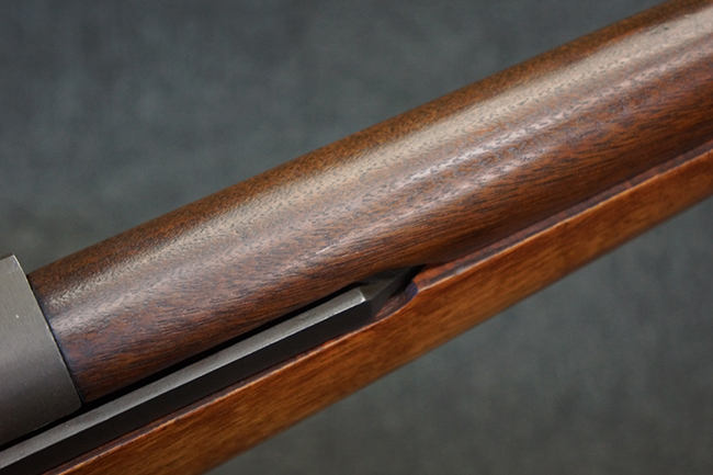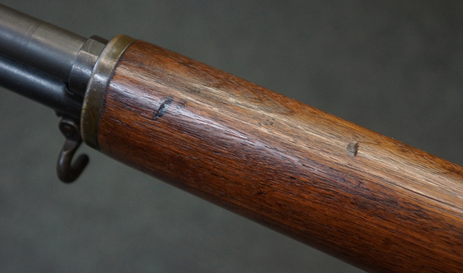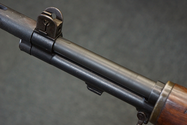 本品の銃身や機関部といった金属部は、やや小傷や擦れ、一部表面錆痕が見られる他、内部に若干の朽ち込み痕が見受けられますが、全体としては大きな欠損等は見られず、比較的良好な状態が保たれています。 木製銃床やハンドガードについても、若干の打ち傷や線傷は散見されるものの、目立った破損等は見られず、概ね良好な状態が保たれています。 尚、銃床はハンドガードに比べてやや明るい色合いとなっています。 バット・プレート部については、若干の打ち傷を除いて目立った変形等は見られず、銃床への取り付けもがたつきもなくしっかりとしています。 ストック内コンパートメントの蓋の開閉やリア・サイトのウィンデージ及びエレベーション調整については問題なく行う事が可能です。 セーフティの切り替えについても問題なく、安全位置でトリガーがロックされます。