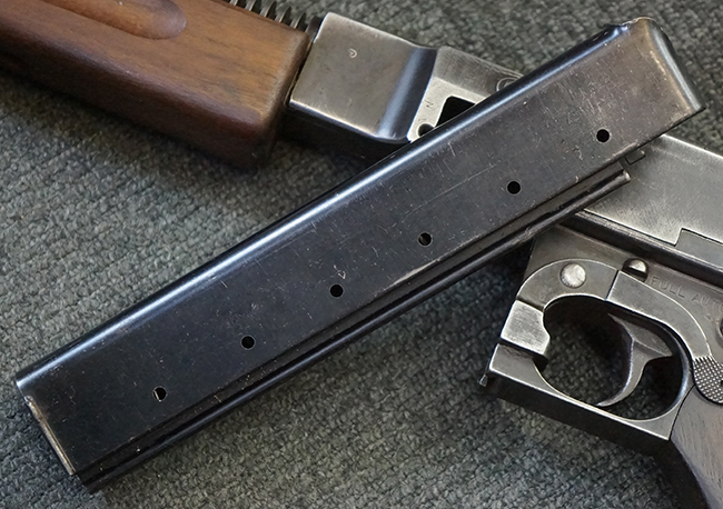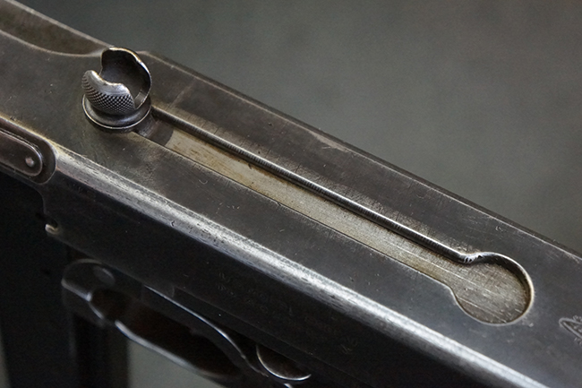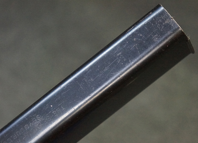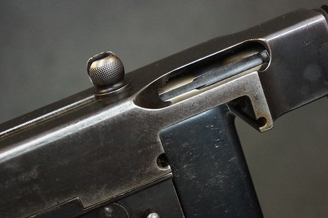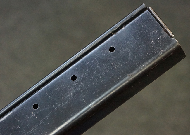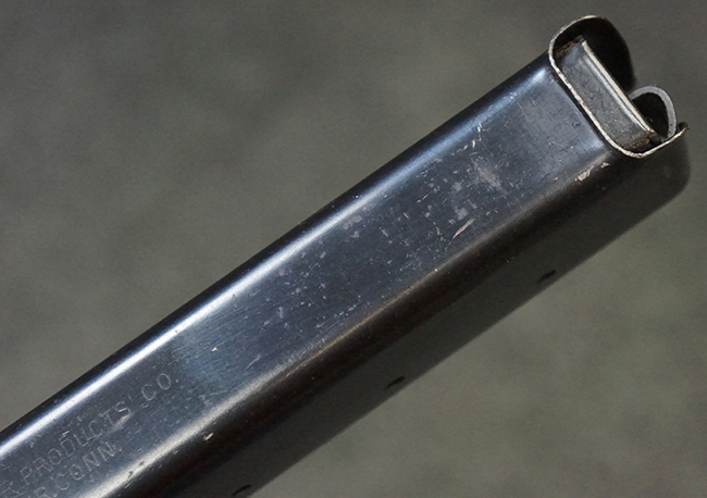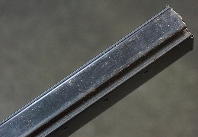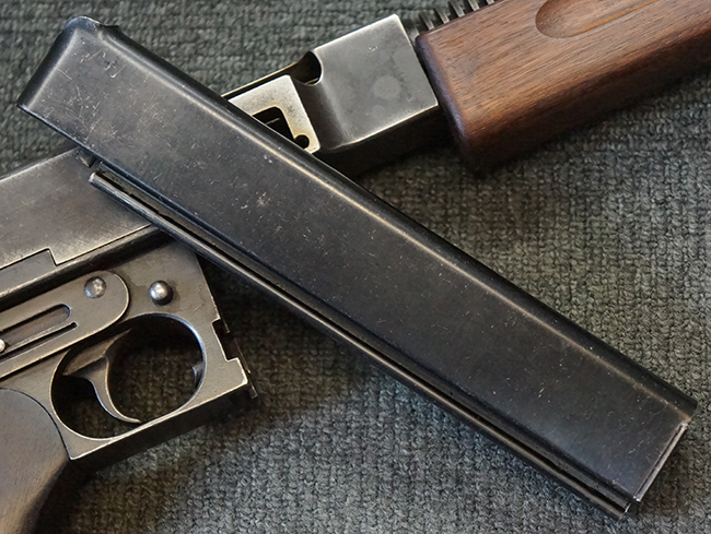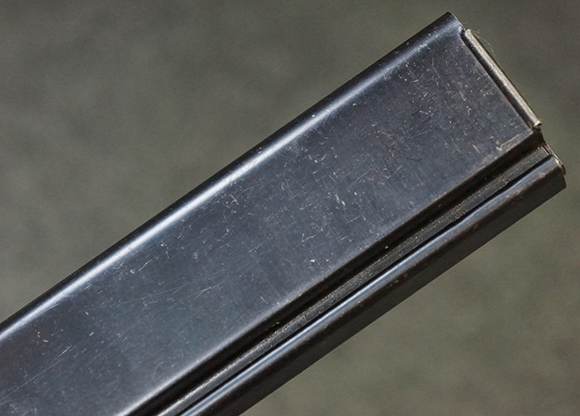 付属のマガジンはSEYMOUR PRODUCTS製の30連タイプで、マガジン表面にはやや小傷や擦れ、一部表面錆痕が見られるものの、変形等は見られず、概ねしっかりとした状態が保たれています。 尚、マガジン・スプリングは入っています。