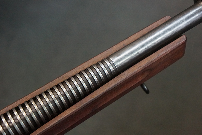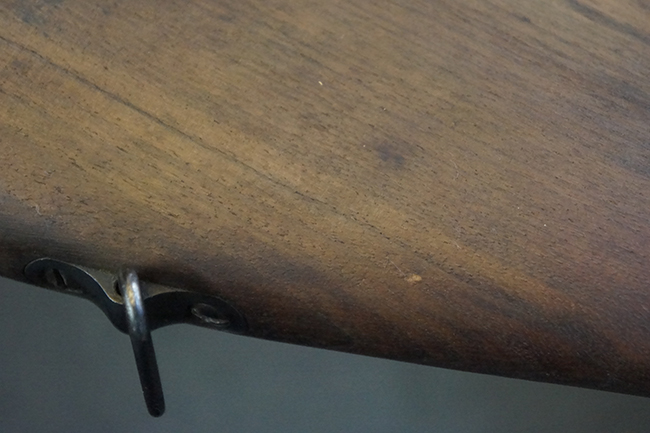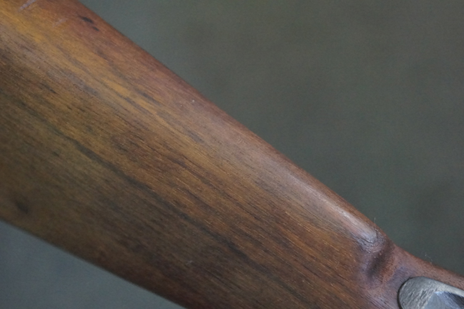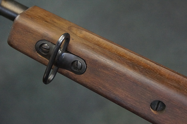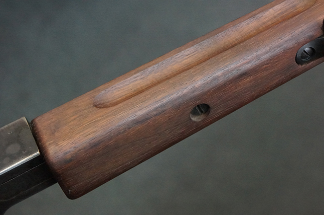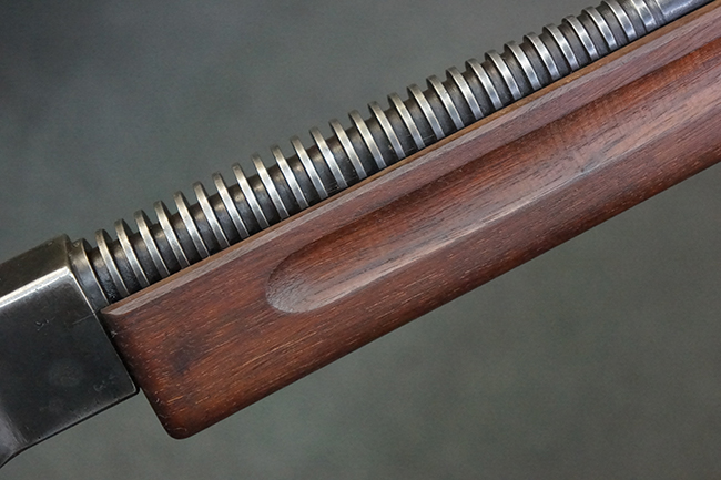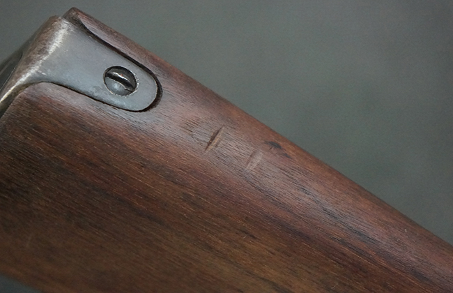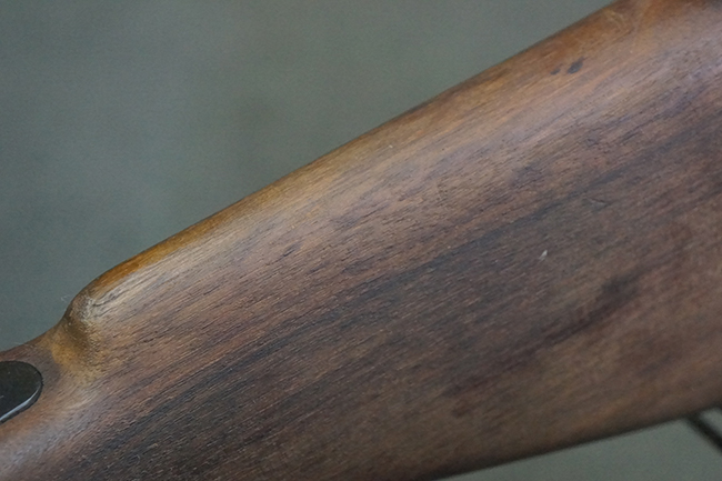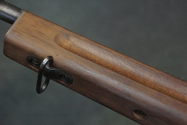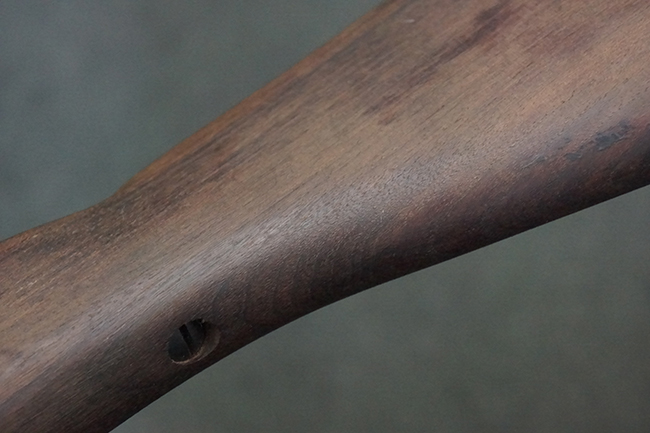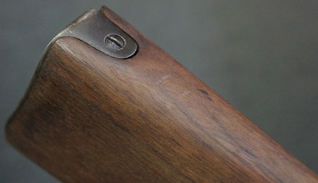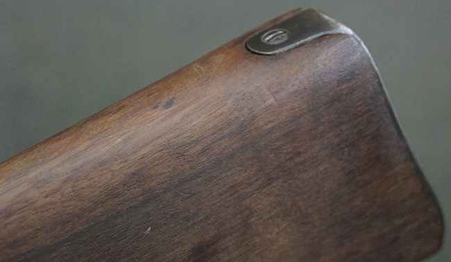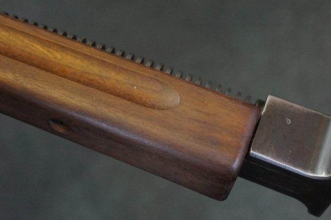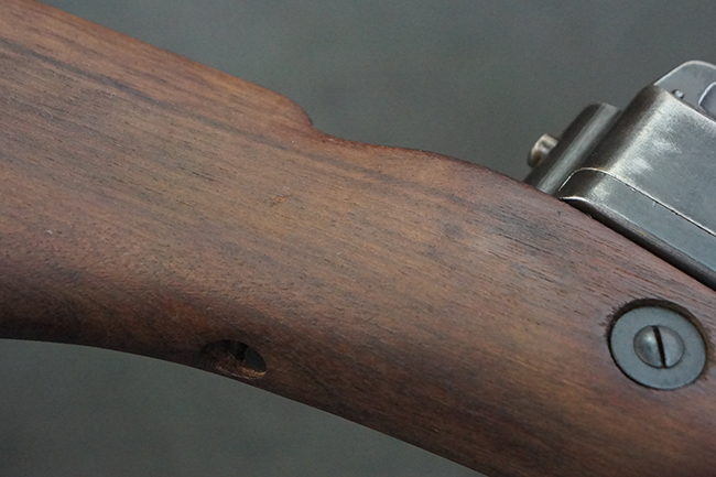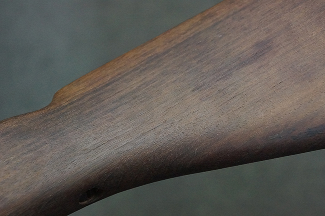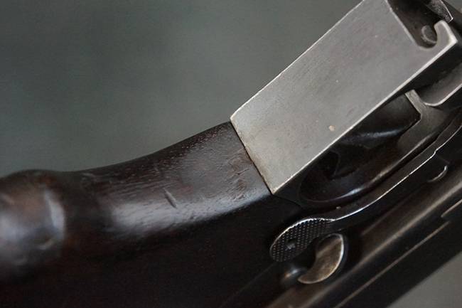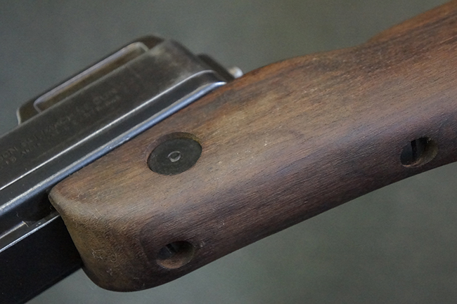 本品は全体にやや使用感が見受けられ、レシーバーや銃身といった金属部については、打ち傷や擦れ、若干の経年による褪色の他、角の部分などに仕上げが薄くなり金属の地肌が表れている箇所が見受けられるものの、全体に目立った欠損等は見られず、概ねしっかりとした状態が保たれています。 木製のハンドガード及びバット・ストックは、金属部に比べて良好な状態が保たれており、若干の打ち傷の他、バット・ストック右側面に強度に影響のないレベルのヘアライン・クラックが見られるものの、それ以外には大きな破損等は見られません。 グリップは、ハンドガードやバット・ストックに比べて使い込まれた暗い色合いとなっており、打ち傷や線傷の他、僅かに欠けが見受けられますが、取り付け自体はがたつきもなくしっかりとしています。 バット・ストックの取り付けは、若干の遊びが見られますが十分許容レベルで、着脱もスムーズに行えます。 バット・プレート部は、やや打ち傷や時代錆の他、一部仕上げが落ちて金属の地肌が表れている箇所が見られるものの、目立った変形等は見られず、ストック内コンパートメントの蓋の開閉についても問題なく行う事が可能です。 マガジンの着脱やリア・サイトの起倒・調整についても問題なく行う事が可能です。 また、トリガーとの連動は有りませんが、セレクター・レバーやセーフティ・レバーの切り替えも可能です。