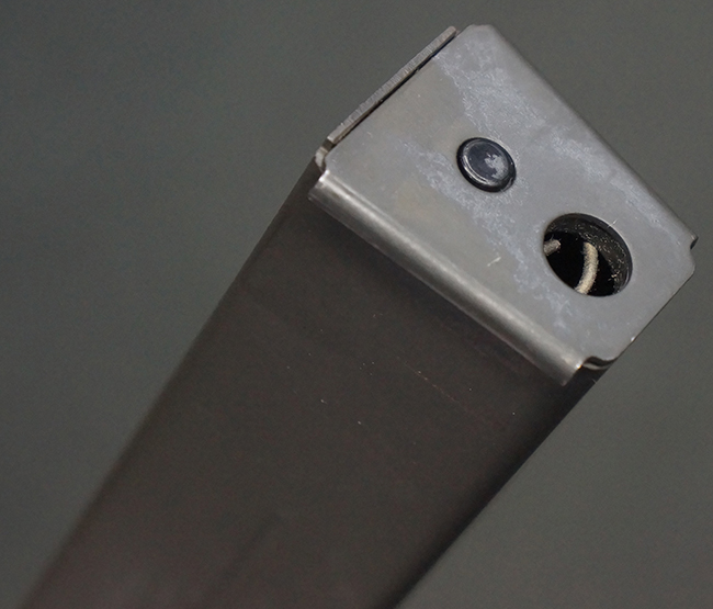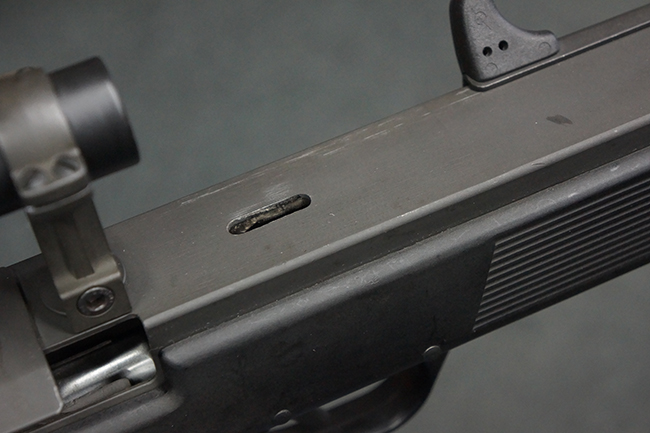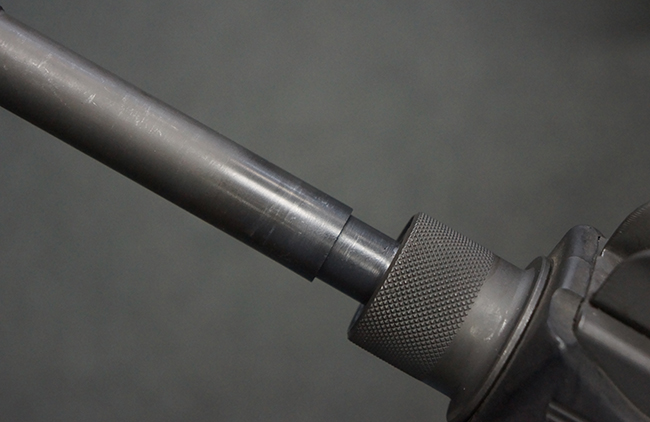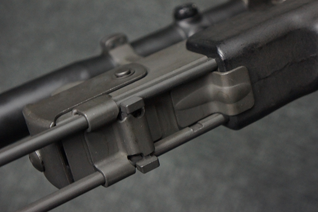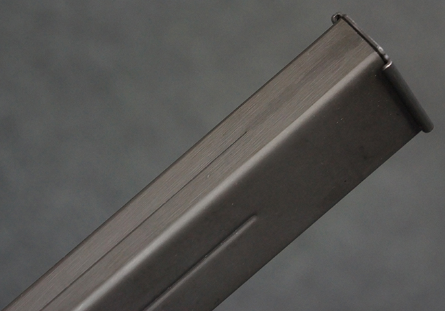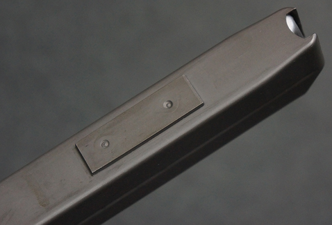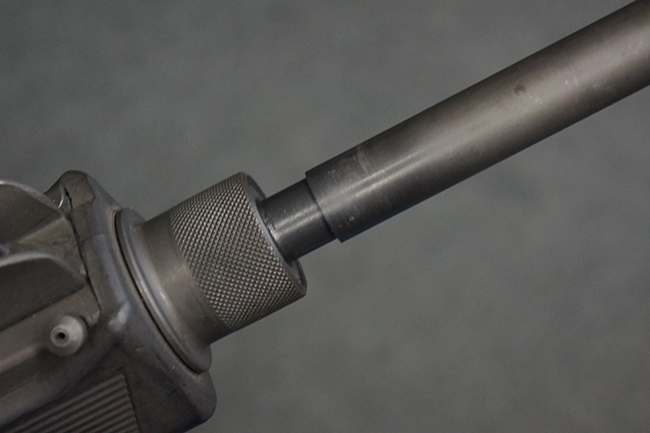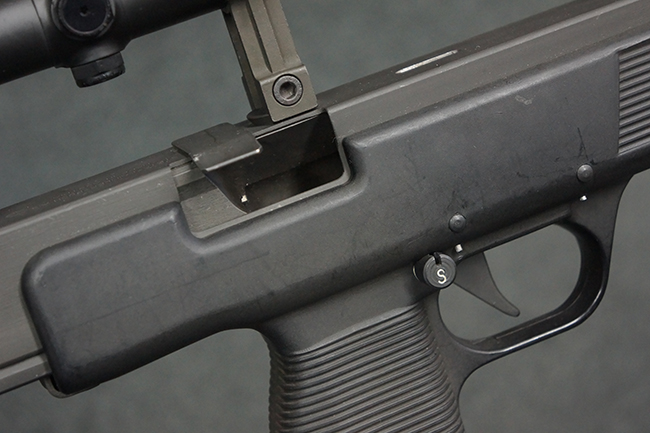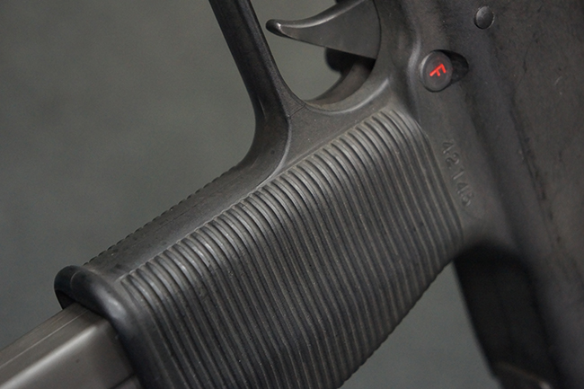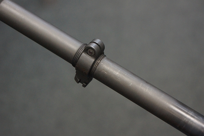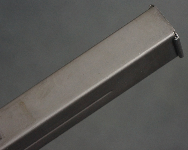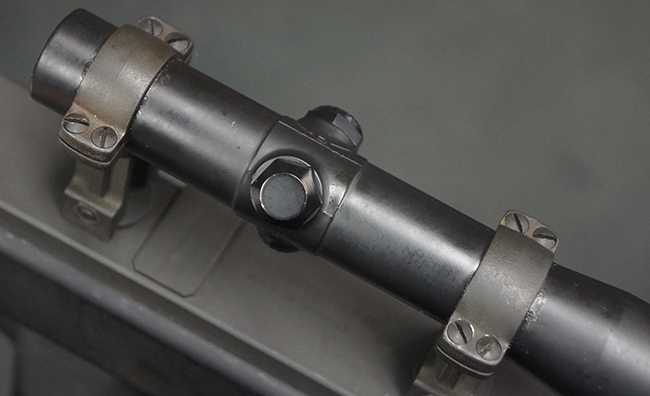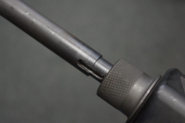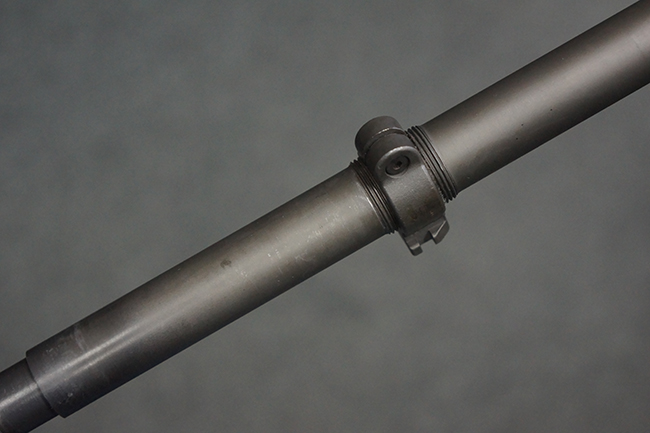本品はロング・バレルに着剣装置、スコープ、排莢口上部にケース・ディフレクターが装備された、ガンポート仕様の珍しいタイプのステアー MPi81 短機関銃です。 レシーバー上面には「STEYR-DAIMLER-PUCH A.G. MADE IN AUSTRIA」のメーカー刻印及びステアー社のロゴが入っています。 シリアルNo.はアッパー・レシーバーとロア・レシーバーでマッチしています。