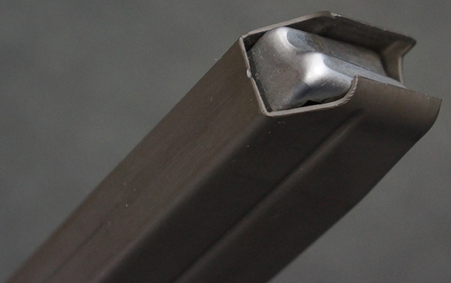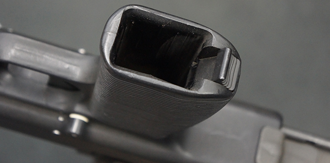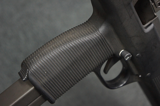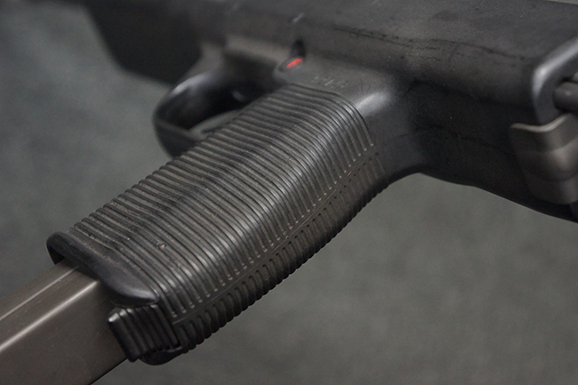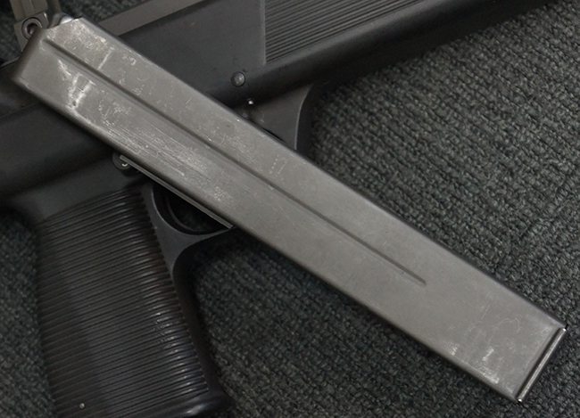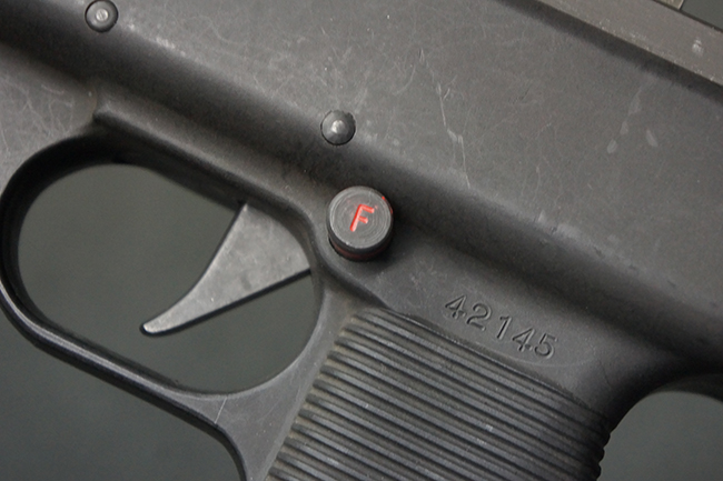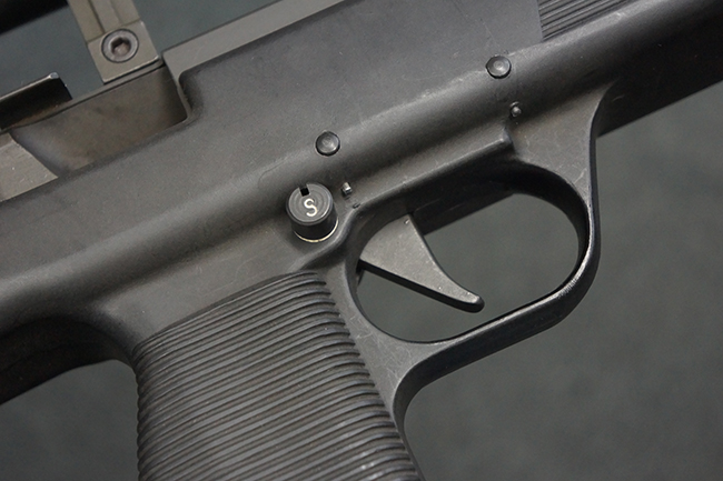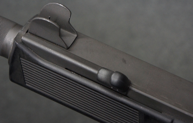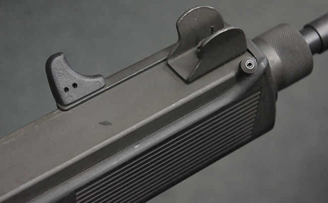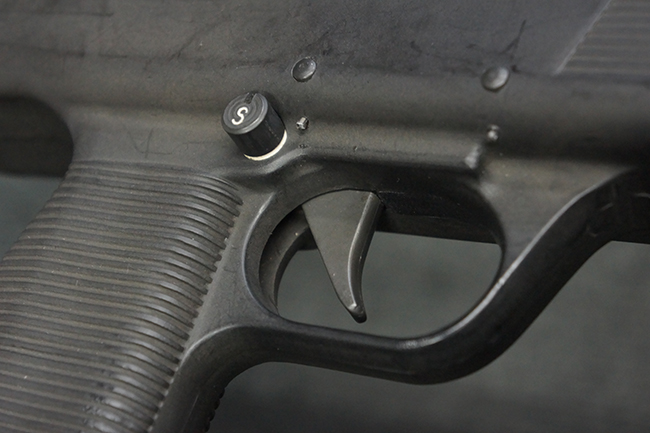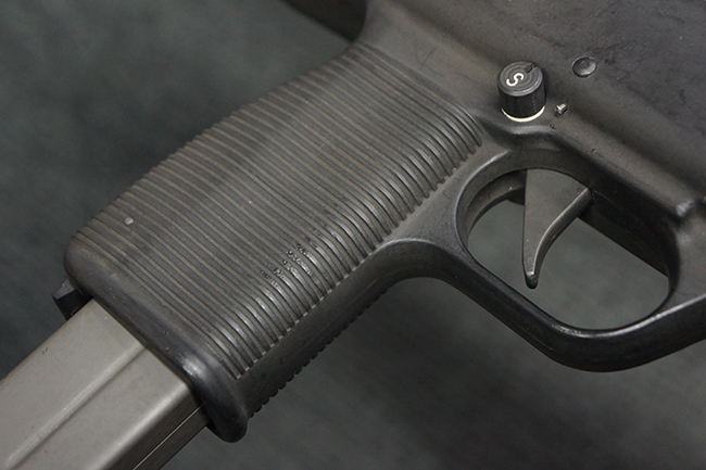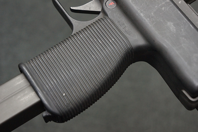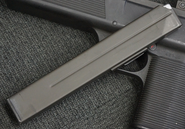 ベースとなったMPi 69短機関銃は、ステアー (Steyr-Daimler-Puch) 社で開発、生産された短機関銃で、1969年にオーストリアの国境警備隊と警察に制式採用になりました。 テレスコーピング・ボルト方式により全長を短縮している点や、マガジンをグリップ内に収納する点等にUZI短機関銃等からの影響が見られますが、フォアエンドからグリップにかけてのロア・フレームが一体成型の樹脂製となっているのが特徴です。 また、ストックがシンプルな伸縮式のワイヤー・ストックとなっている点もUZIとは異なっています。 さらにコッキング・ハンドルが前方のスリング・スイベルと兼用となっているのが本銃の最大の特徴で、これによりスリングを肩にかけたまま銃を前後させてのコッキングが可能となっています。 作動方式はシンプルなブローバック方式で、オープン・ボルト位置から射撃を行う構造となっています。 トリガー上部にはボタン式のマニュアル・セーフティを兼ねたセレクターが装備されており、ボタンを完全に左側に押し込んだポジションでは、トリガーの引きしろに応じてセミ/フル・オートマチック射撃の切り替えが可能です。 ボタンが左右の中間位置にある場合は、トリガーを途中まで引いてのセミ・オートマチック射撃のみが可能となります。