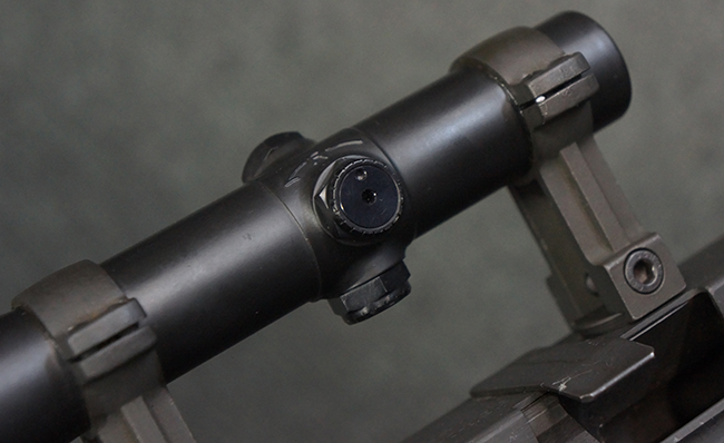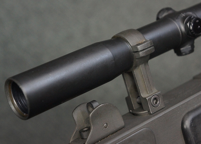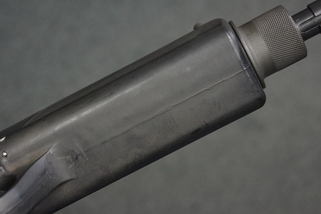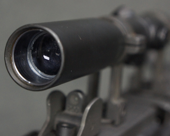 本品の金属部はやや小傷や擦れ、若干の経年による褪色は見られるものの、目立った欠損等は見られず、パーカー仕上げも比較的良好に残っています。 ハンドガードとグリップが一体型となった樹脂製ロア・レシーバーについても、若干の打ち傷や擦れは散見されるものの、大きな破損等は見られず、概ね良好なコンディションが保たれています。 付属の低倍率スコープはサークル・レティクルで、目立った曇りや塵の混入は見られず、クリアな視野が保たれています。 セレクター・ボタンの切り替えやストックの伸縮、リア・サイトの調整についても問題なく行う事が可能です。 付属のマガジンは32連タイプで、こちらもやや小傷や擦れは見られるものの、現状目立った凹みや変形等は見られません。 尚、マガジン・スプリングは入っています。