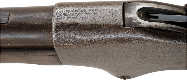 本品は幕末に国内に輸入された米国製オリジナルのスペンサー 騎兵銃(カービン)です。本体(レシーバー)上部にSENCER REPEATING(一行目) RIFLE CO. BOSTON MASS.(二行目) PATD MARCH 6,