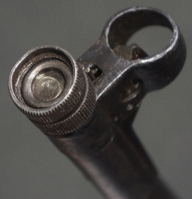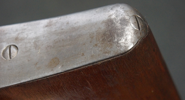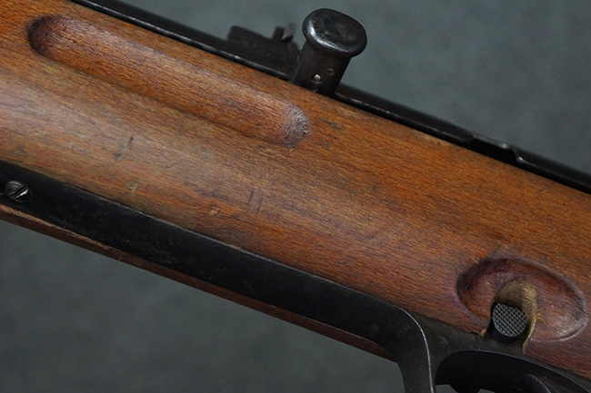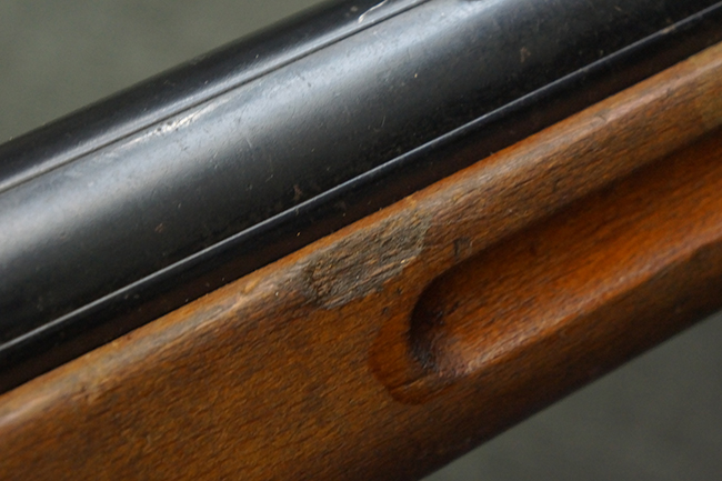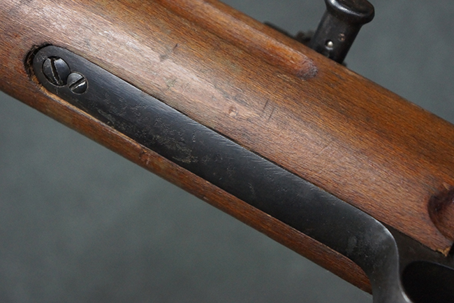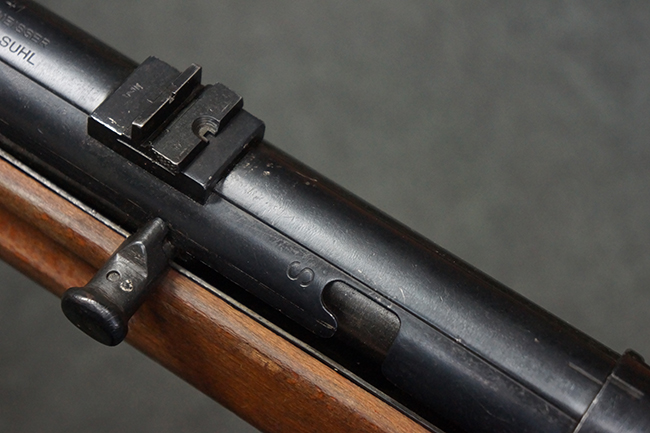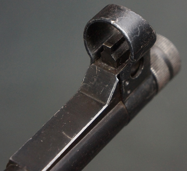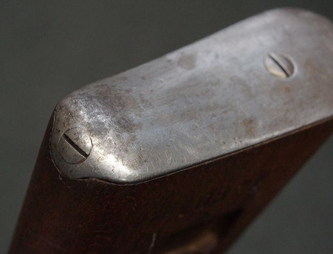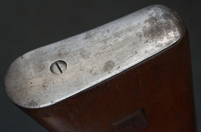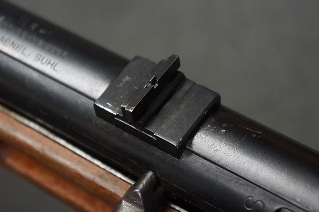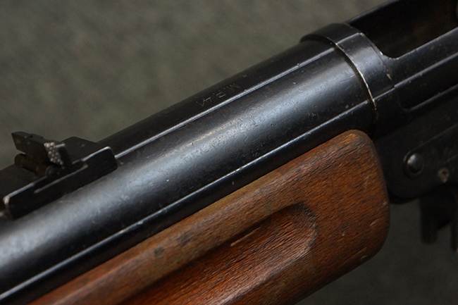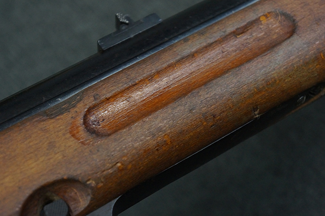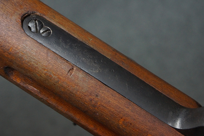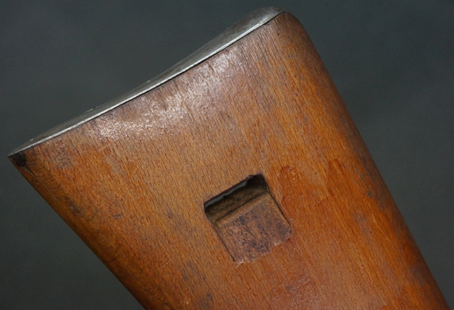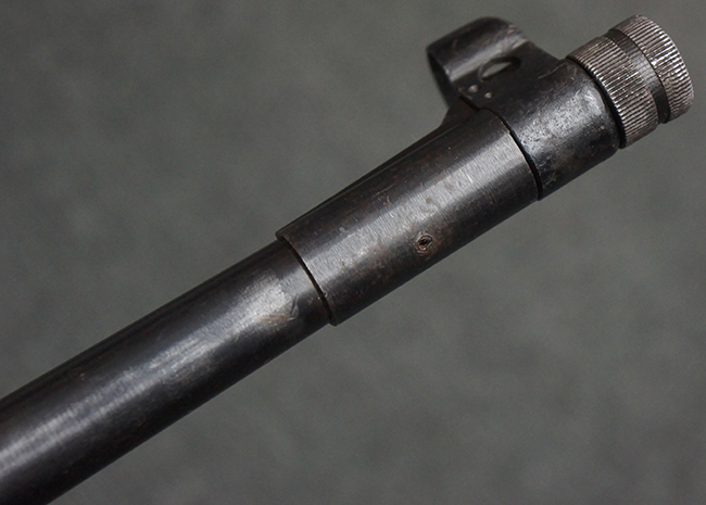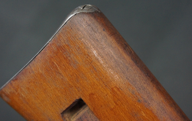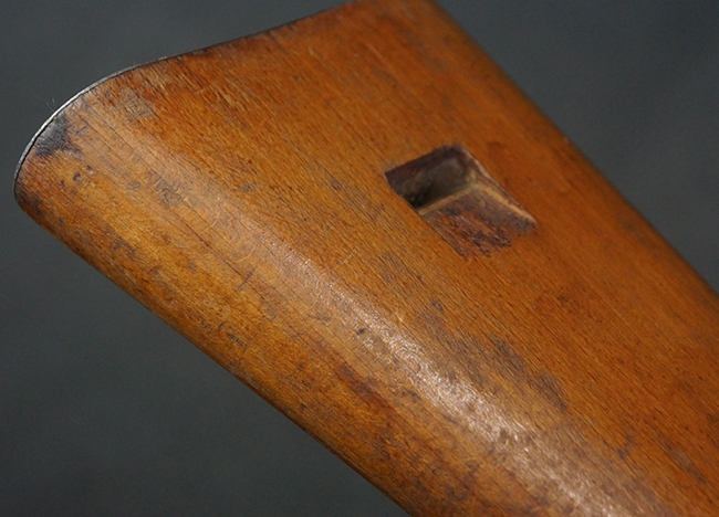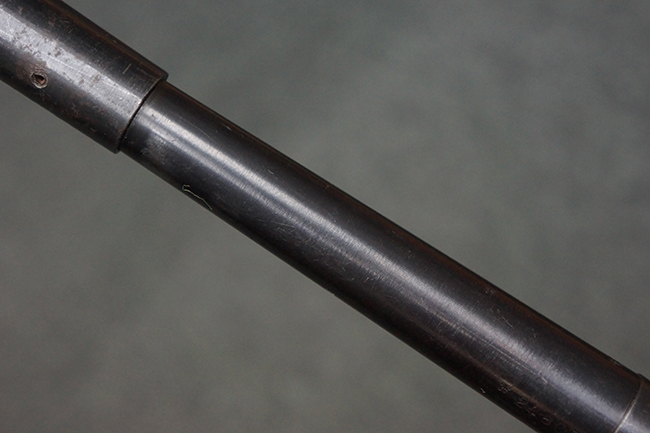 本品は全体にやや使用感が見受けられ、銃身や機関部、トリガー・ガードといった金属部は、やや打ち傷や擦れ、経年による褪色の他、やや表面錆痕が見られますが、大きな欠損等は見られず、オリジナルの表面仕上げも比較的残っています。 尚、フロント・サイト・ガードは取り付けにやや遊びが見られます。 木製銃床についても、やや打ち傷や線傷の他、銃床右側面のレシーバー周辺に一部表面的な欠けが見られるものの、大きな破損等は見られず、各部の取り付けもがたつきもなくしっかりとしています。 バット・プレートについては、やや打ち傷や時代錆が見られますが、こちらも目立った変形等は見られず、銃床への取り付けにもがたつきは見られません。 リア・サイトの切り替えやマガジンの着脱については問題なく行う事が可能です。 セレクターの切り替えも可能ですが、トリガーとの連動等は有りません。 付属のマガジンには、「M.P.41 PATENT SCHMEISSER」のパテント刻印に加えて、ハーネル社のロゴが打刻されている他、20526の番号が電気ペンにより入っています。 マガジンについてもやや使用感が見受けられ、若干の打ち傷や擦れ、表面錆痕の他、一部僅かな凹みが見られるものの、現状大きな変形や欠損等は見られません。 尚、マガジン・スプリングは入っています。