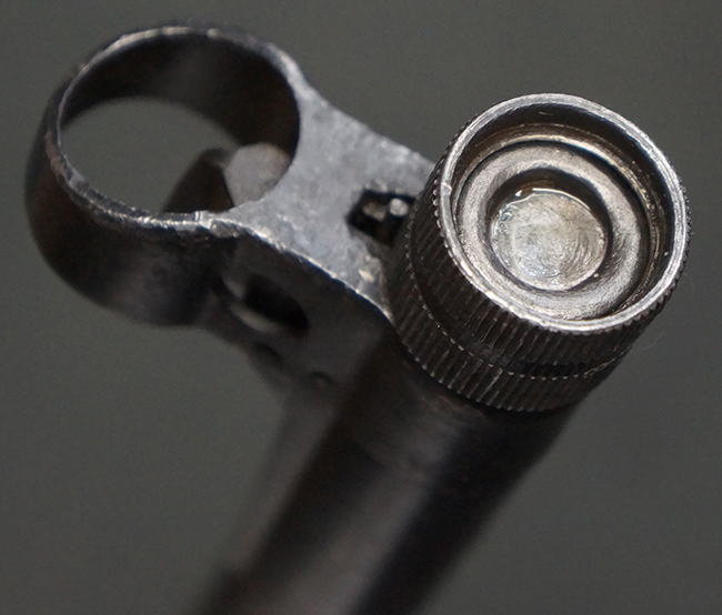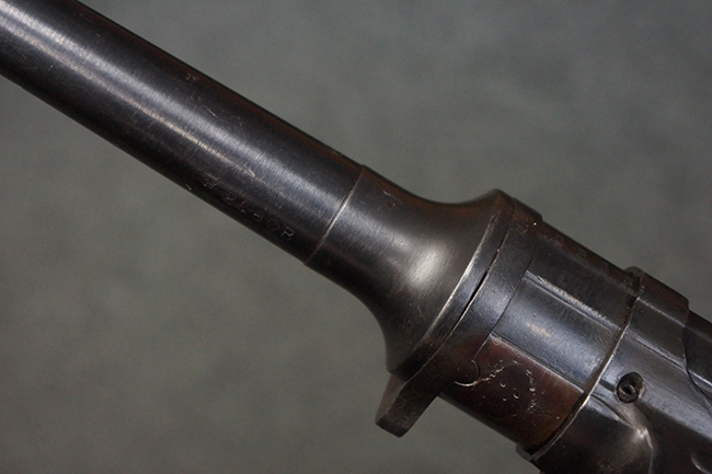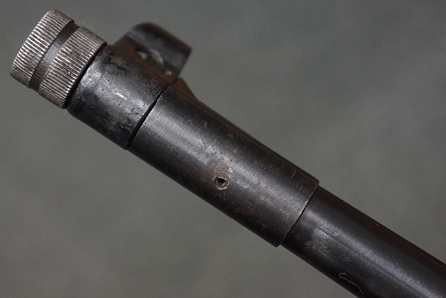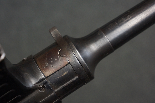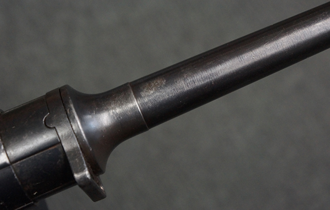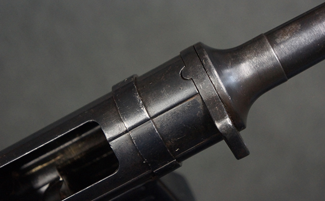 この他、MP40からMP41への大きな変更点として、銃身のレシーバーへの取り付け方法の変更が挙げられます。 MP40ではバレル・ナットを使用して銃身をレシーバーに固定していましたが、MP41ではバレル・ナットを使用せずに銃身を薬室に挿入し、薬室側から六角形のブロックにより銃身をネジ留めした上で、本体側面から六角ブロックをピンで固定する方式に変更されました。 尚、ヒューゴ・シュマイザーはこの銃身の取り付け方法に関する特許を取得しており、MP41本体にもそのパテント刻印が打刻されています。 また、連合国がMP40をシュマイザーによる設計と勘違いをしてシュマイザーと呼称していたきっかけとして、本銃のシュマイザー・パテント刻印を読んだ為とも言われています。
