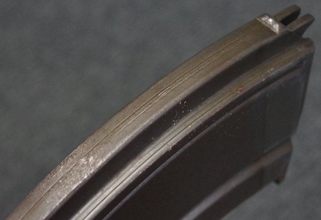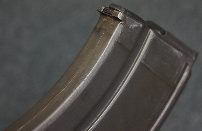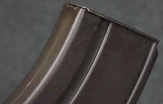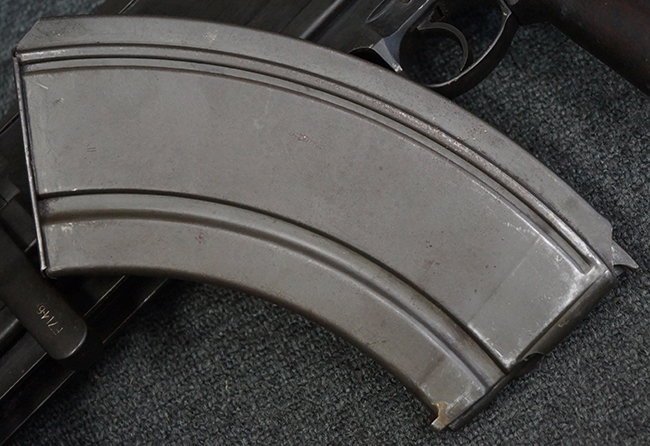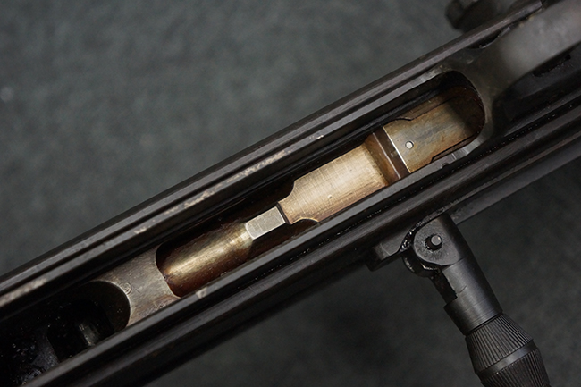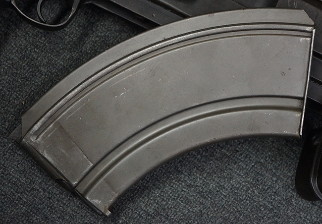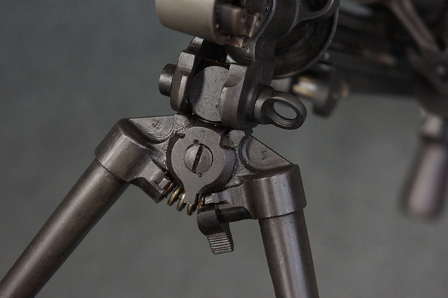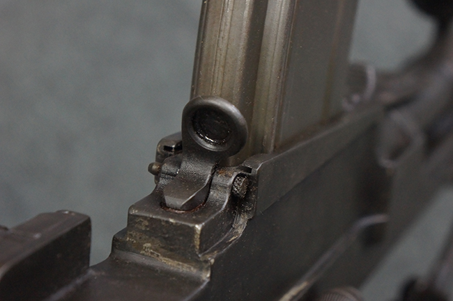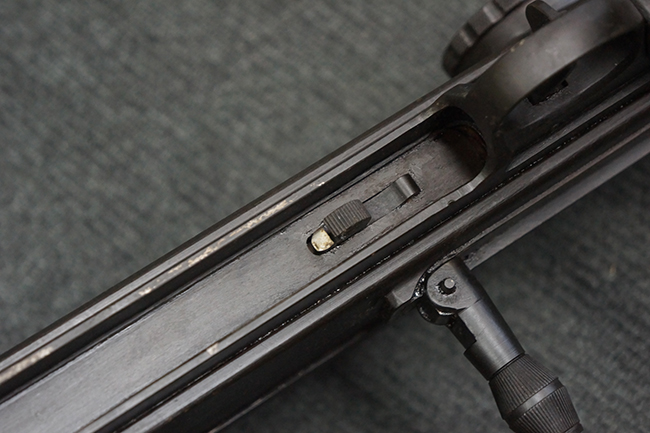二脚の展開やダイヤル・サイトの調整、排莢孔及びマガジン取り付け部のダスト・カバーの開閉、キャリング・ハンドルの角度変更、マガジンの着脱については問題なく行う事が可能です。 セレクター・レバーについてもトリガーとの連動は有りませんが、切り替えは可能です。 付属のマガジンについては、若干の小傷や擦れを除いて目立った凹みや変形等は見受けられず、概ね良好な状態が保たれています。 尚、マガジン・スプリングは入っています。