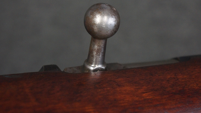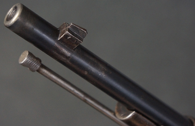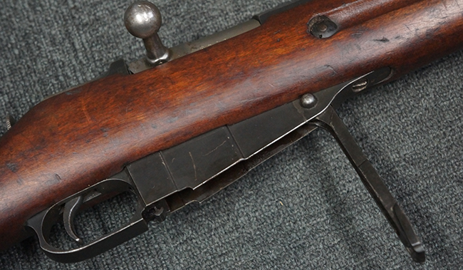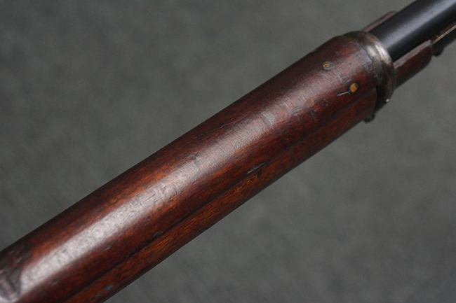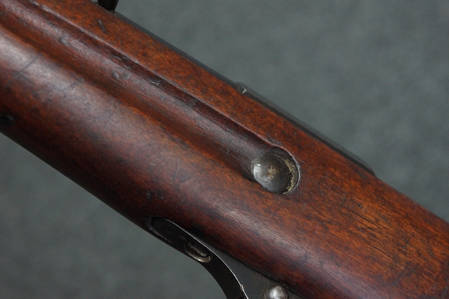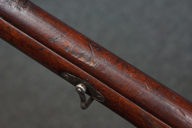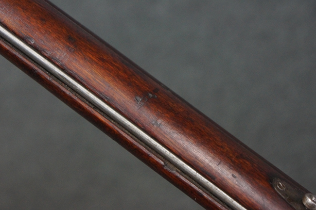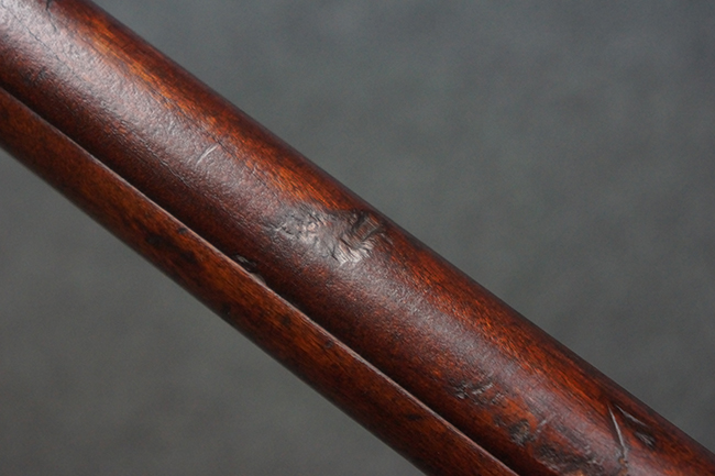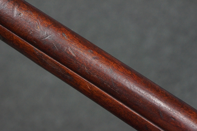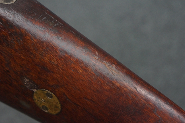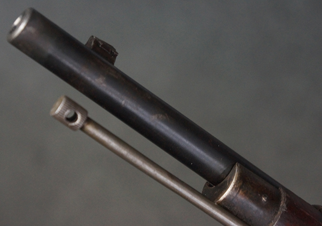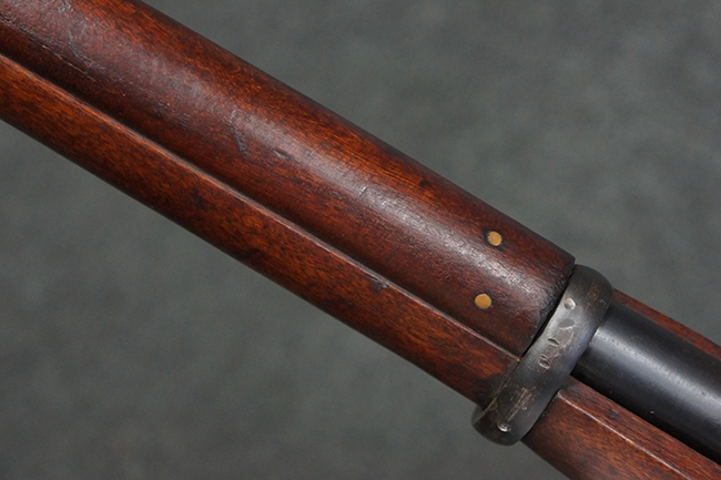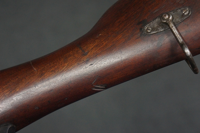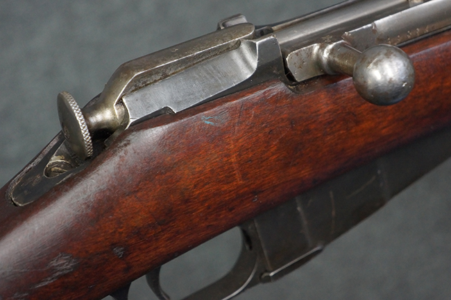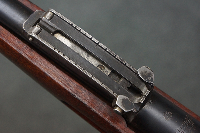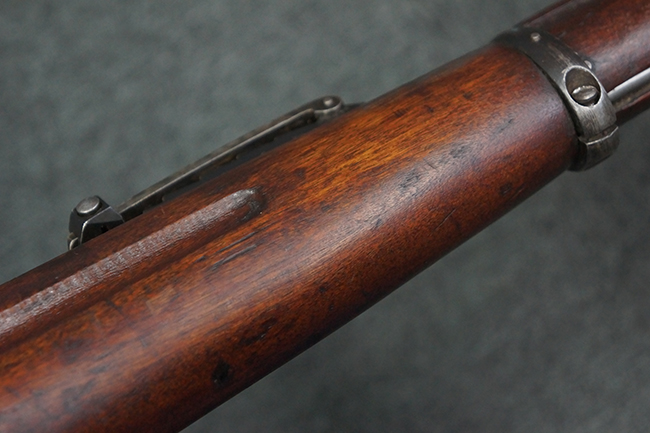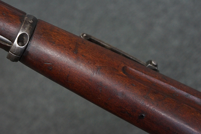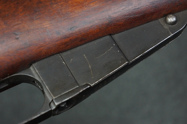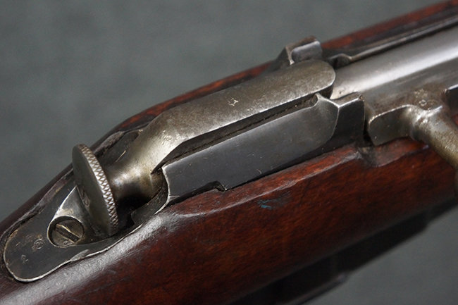 本品の機関部や銃身といった金属部は、やや打ち傷や経年による褪色が見られますが、大きな欠損等は見られず、概ねしっかりとした状態が保たれています。 ボルト・ハンドルやコッキング・ピースにはやや表面錆痕が見られますが、こちらも現状目立った破損や欠損等は見受けられません。 木製銃床についても、やや打ち傷や線傷が見受けられ、ハンドガード上部や銃把右側面及び下部にやや深い打ち傷が見られますが、全体としては比較的しっかりとした状態が保たれており、各部の取り付けにも目立ったがたつき等は見られません。 傷み易いバット・プレート部については、やや打ち傷や擦れの他、全体的に仕上げが落ちて一部時代錆や表面錆が見られるものの、現状大きな変形等は見られず、銃床への取り付けについてもがたつきもなくしっかりとしています。 リア・サイトの調整や弾倉底板の開閉については問題なく行う事が可能です。 尚、弾倉内のフォロワー及びスプリングは入っていません。