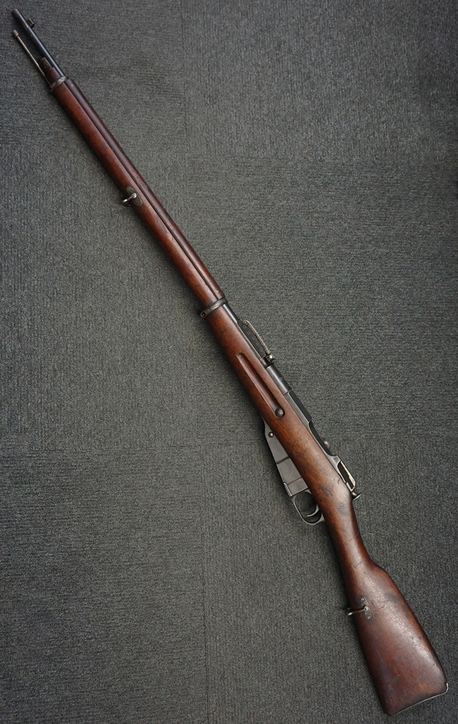 帝政ロシアのセルゲイ・イワノビッチ・モシン大佐とベルギーのナガン兄弟が設計したボルト・アクション・ライフルです。 1891年にロシア帝国の制式小銃M1891として採用された後、様々な改良を受けながら第二次世界大戦まで使用され続けた大変息の長い小銃でした。 このためバリエーションが多く、またライセンス生産や鹵獲されて本国以外でも数多く使用された銃でもあります。 刻印はいくつかのバリエーションがあります。