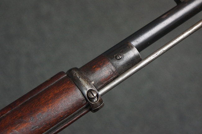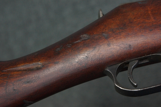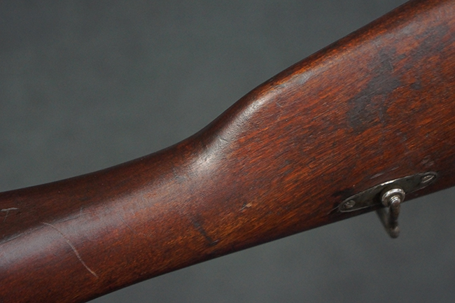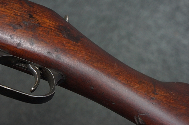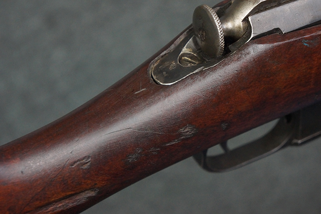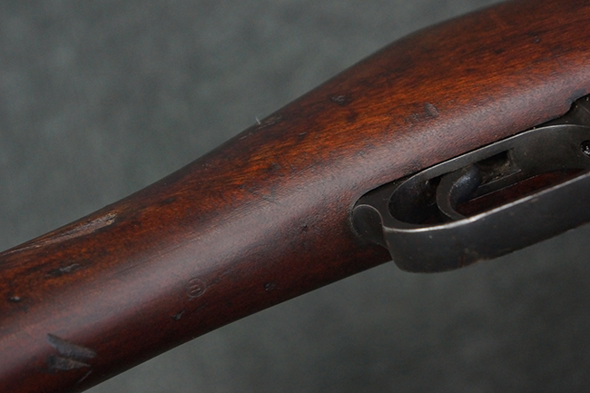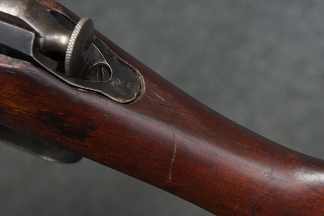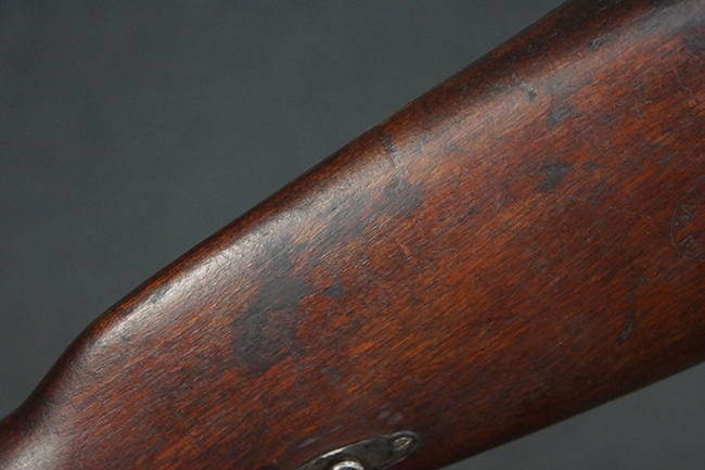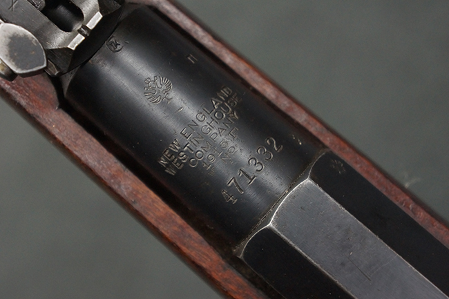 本品は第一次世界大戦中の1915年に米国のニュー・イングランド・ウェスティングハウス (New England Westinghouse) 社で製造された品です。 当時の帝政ロシアは小火器の生産能力が低く、大戦によって小銃不足が深刻化した事から米国へ発注が行われ、150万挺のM1891小銃及び1億発の7,62mm×54R弾がレミントンUMC社に発注された他、ウェスティングハウス社にも180万挺のM1891小銃の発注が行われました。 1915年から1917年にかけてレミントン社で840,310挺、ウェスティングハウス社で770,000挺のM1891が製造され、その内レミントン社製造分の131,400挺及びウェスティングハウス社製造分の225,260挺が1917年1月までにロシアに到着しました。 1917年にロシア革命が起こると、ロシア政府は資金難から米国への小銃の発注契約を破棄し、小銃の品質に問題があるとして代金の支払いを拒否しました。 その結果、米国の両メーカーは経済的な損失を被る事となりました。 米国政府は両メーカーを救済するためにウェスティングハウスの在庫していたM1891に加えて20万挺の発注を行った他、レミントンの在庫していた78,950挺の代金未払いのM1891についても買い上げを行い、さらに60万挺の追加発注を行いました。 米国政府は買い上げたM1891を主に訓練用として州兵や民兵組織等に支給した他、一部は「Russian Three-line Rifle, Caliber 7.62 mm. (.3 inch)」としてフレーミング・ボム刻印やアメリカン・イーグル刻印が打刻されて陸軍でも使用されました。 1918年に第一次世界大戦が終結した後、米国政府は77,000挺のM1891小銃を新たに建国されたチェコスロバキアに譲渡し、一部はチェコ軍団によって使用されました。 尚、ウェスティングハウス社では1915年から1918年にかけてM1891の製造が行われましたが、同社製のM1891の薬室上には全て1915の刻印が入っています。