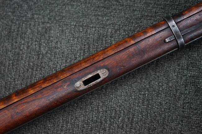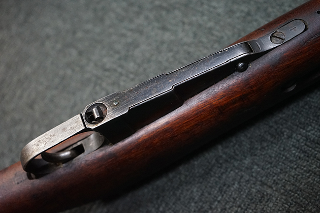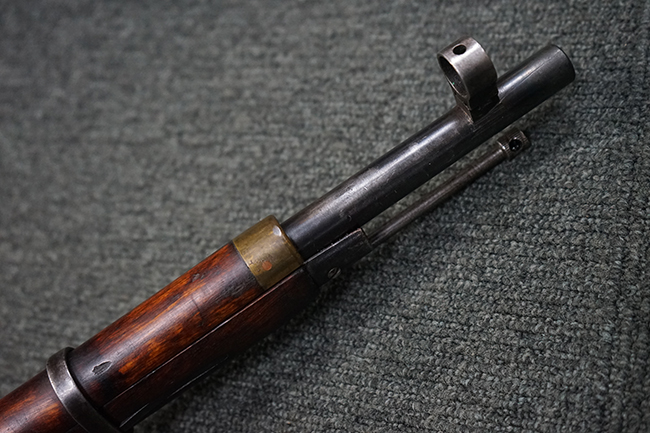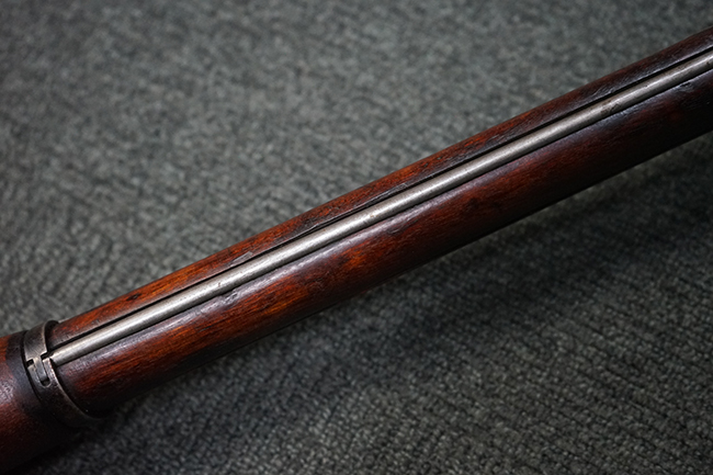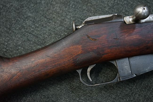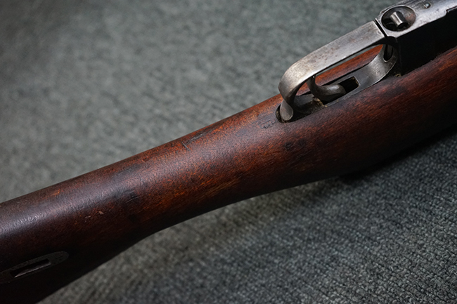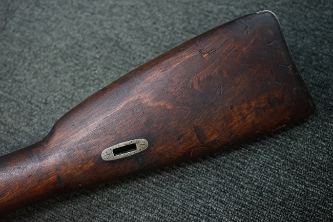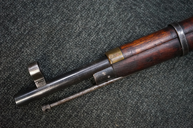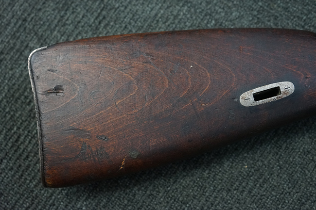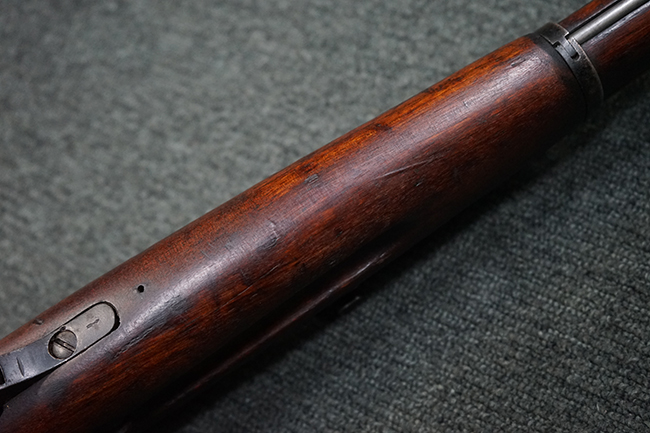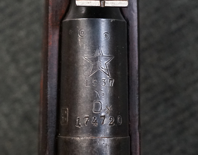 本品は円筒形レシーバーのM1891/30歩兵銃で、薬室上面に1937の製造年とツーラ造兵廠製を示す刻印が入っています。 また「SA」の刻印と「D」の刻印が打たれており、フィンランドでリバレルされていることが分かります。 各部のシリアルNo.はアン・マッチとなっています。 本品の機関部や弾倉、銃身といった金属部は、使用感と共に多少の経年が感じられます。若干の小傷や擦れを除いて目立った欠損等も見受けられず、全体に黒染め仕上げが残った比較的良好な状態が保たれています。 白磨きのボルトについてもボルト・ハンドル周辺にやや表面錆痕が見られる他は目立った表面錆等は見受けられず、良好な状態が保たれています。 銃床は単材製となっており、こちらも若干の打ち傷などの小傷が見受けられるものの、目立った破損や欠損等はなく、艶のある仕上げも大部分に残っています。 アッパー・ハンド・ガードの木目がストックと異なっており、フィンランドにて交換されたものと思われます。 ハンドガードはがたつきもなくしっかりと取り付けられています。 バット・プレート部については殆ど地金っぽくなっていますが現状目立った腐食等は見られません。 リア・サイトの調整や弾倉底板の開閉については問題なく行う事が可能です。マガジン・スプリングは除去されています。 クリーニング・ロッドが付属します。