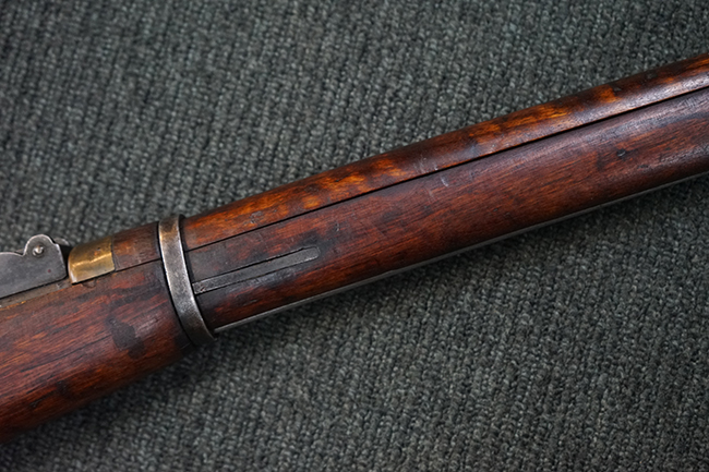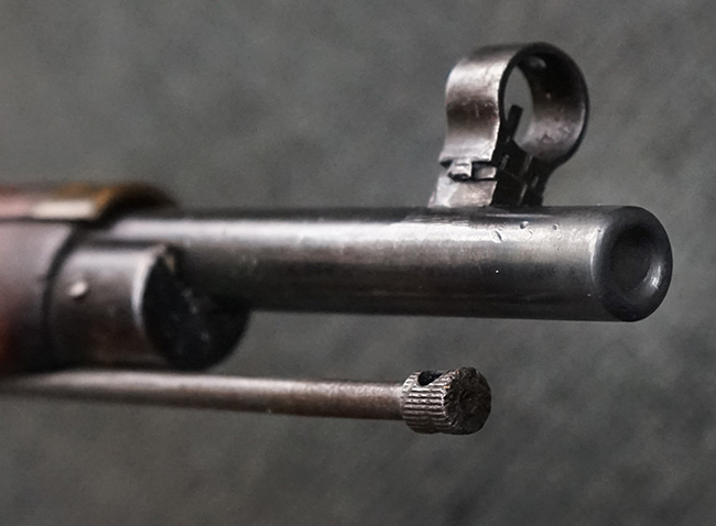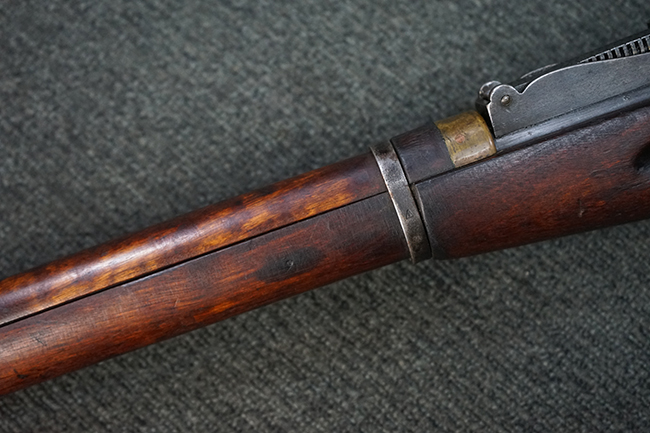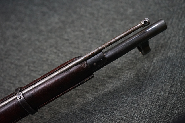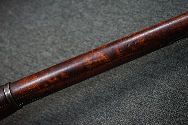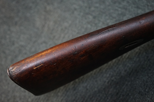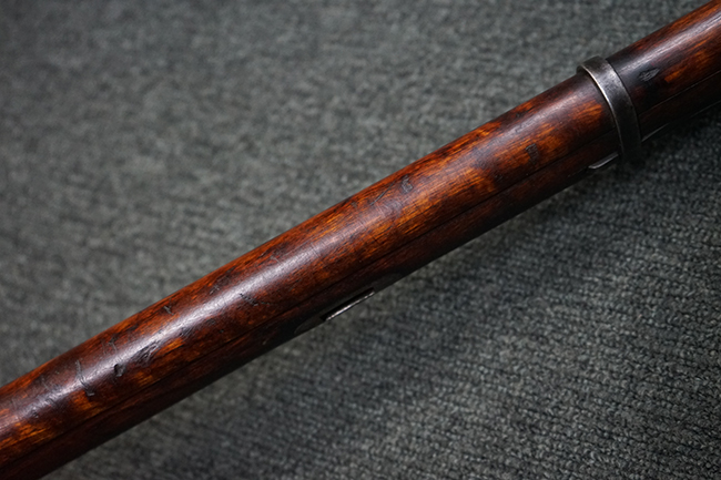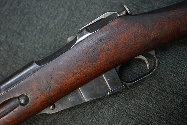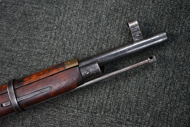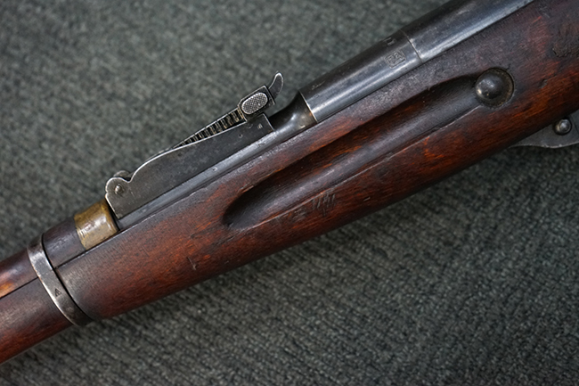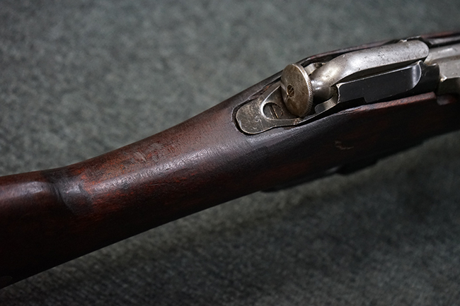 本品は円筒形レシーバーのM1891/30歩兵銃で、薬室上面に1937の製造年とツーラ造兵廠製を示す刻印が入っています。 また「SA」の刻印と「D」の刻印が打たれており、フィンランドでリバレルされていることが分かります。 各部のシリアルNo.はアン・マッチとなっています。 本品の機関部や弾倉、銃身といった金属部は、使用感と共に多少の経年が感じられます。若干の小傷や擦れを除いて目立った欠損等も見受けられず、全体に黒染め仕上げが残った比較的良好な状態が保たれています。 白磨きのボルトについてもボルト・ハンドル周辺にやや表面錆痕が見られる他は目立った表面錆等は見受けられず、良好な状態が保たれています。 銃床は単材製となっており、こちらも若干の打ち傷などの小傷が見受けられるものの、目立った破損や欠損等はなく、艶のある仕上げも大部分に残っています。 アッパー・ハンド・ガードの木目がストックと異なっており、フィンランドにて交換されたものと思われます。 ハンドガードはがたつきもなくしっかりと取り付けられています。 バット・プレート部については殆ど地金っぽくなっていますが現状目立った腐食等は見られません。 リア・サイトの調整や弾倉底板の開閉については問題なく行う事が可能です。マガジン・スプリングは除去されています。 クリーニング・ロッドが付属します。