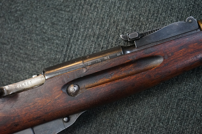 M1891/30はM1891の改良型で、第二次世界大戦時のロシア軍主力小銃です。 M1891/30ではM1891で問題とされた点が改良されましたが、機関部の構造や使用弾薬など基本的にはM1891と同じです。 第一次世界大戦の経験から、各国では歩兵用小銃の短縮化が図られており、M1891/30もM1891に比べ銃身が10cm程短くなりました。 また、兵士の間では不評であったアルシン表記のリア・サイトをメートルに変更すると共に、リア・サイトとフロント・サイトが強化され、フロント・サイトに筒状のカバーが追加されました。 さらに生産工程の簡略化も図られ、機関部前方にある銃身受部が、八角形から円筒形へ変更されました。 モシンナガンM1891/30小銃には、新規製造された個体の他、既存のM1891からM1891/30相当に改修された個体の2種類が存在します。 尚、M1891からの改修型は、銃身受部が八角形のままです。 M1891/30にはM1891からの改修型や新造型などがあり、刻印は各種のバリエーションが存在します。