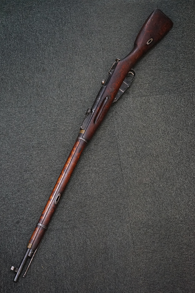 ロシア大佐のセルゲイ・イワノビッチ・モシンとベルギーのナガン兄弟が設計したボルト・アクション・ライフルです。 1891年にロシア帝国の制式小銃M1891として採用されて以来、様々な改良を受けながら第二次大戦まで使用され続けた大変息の長い小銃でした。 このためバリエーションが多く、また、ライセンス生産や鹵獲によりロシア以外の国々でも多く使用された銃でもあります。