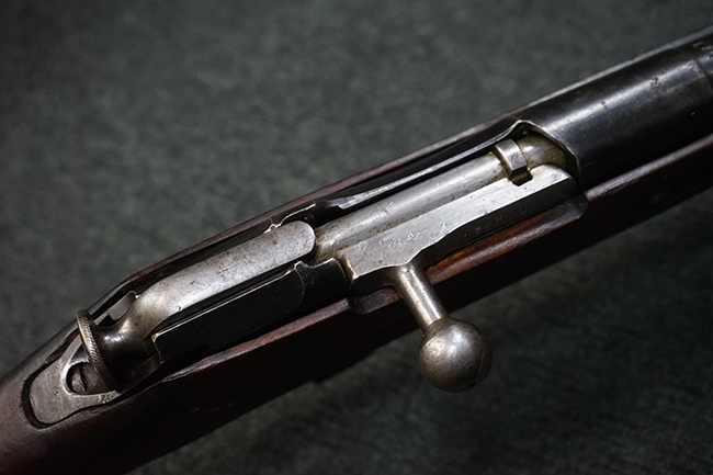 トリガー・テンションのある、ボルト・ハンドルが閉じた状態で溶接された旧加工品です。 (YS)
