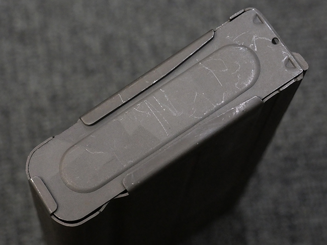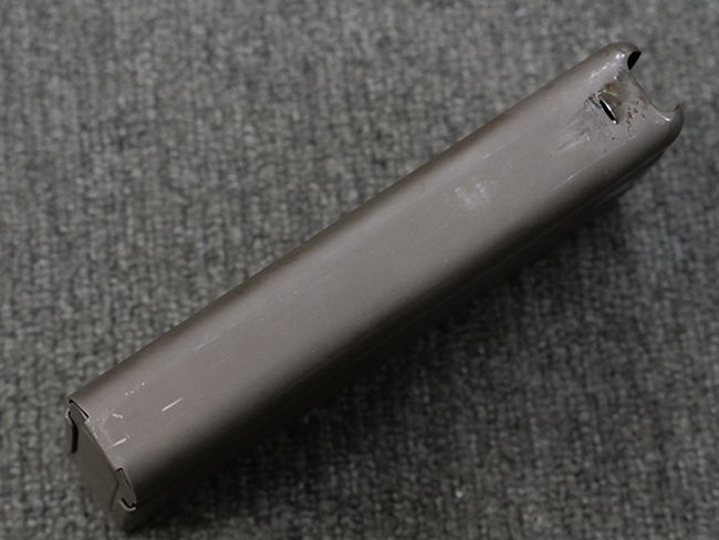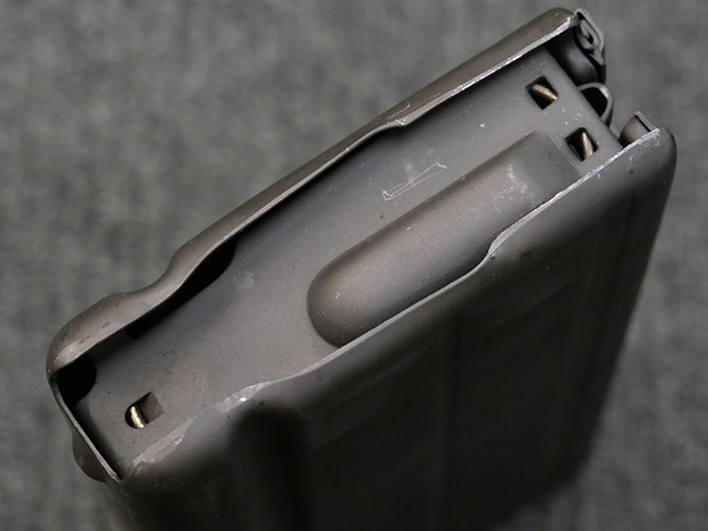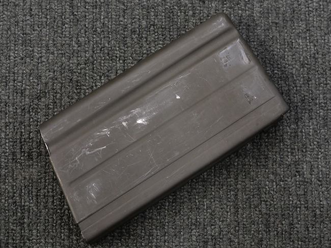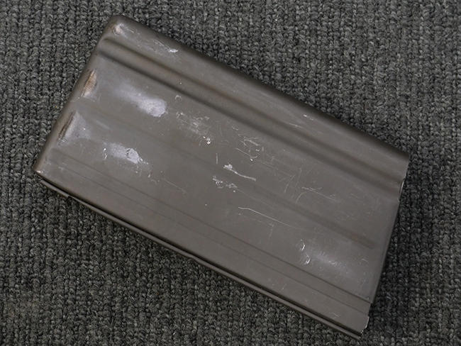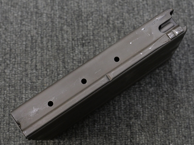 マガジンの着脱や二脚の展開、リア・サイトの調整、レシーバーのテイクダウン操作についても問題なく行う事が可能です。 セレクター・レバーのクリック感もしっかりとしており、安全位置でトリガーがロックされます。 付属のマガジンは若干の小傷や擦れを除いて目立った凹みや変形等は見られず、比較的良好な状態が保たれています。 なお、マガジン内のスプリングは残っています。 トリガーテンションの有る、ボルトが開いた状態で固定された新加工品です。 (TK)