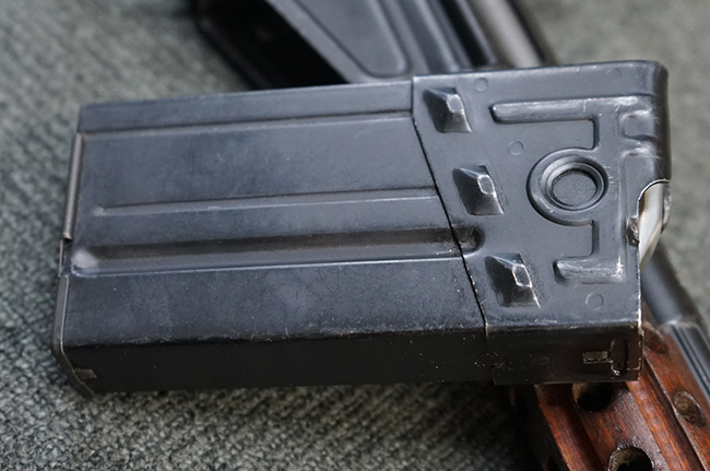 マガジンの着脱やドラム式リア・サイトの切り替えについては問題なく行う事が可能です。 セレクター・レバーの切り替えについても問題はなく、セーフポジションでトリガーがロックされます。 付属のマガジンについても、若干の小傷や擦れは見られるものの、現状大きな変形等は見受けられません。 尚、マガジン・スプリングは入っています。