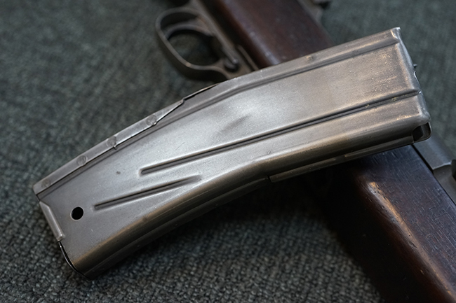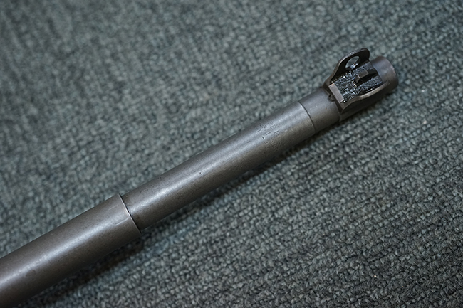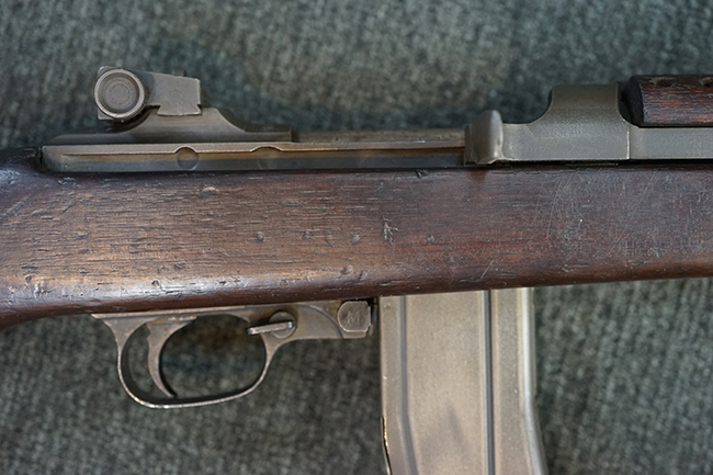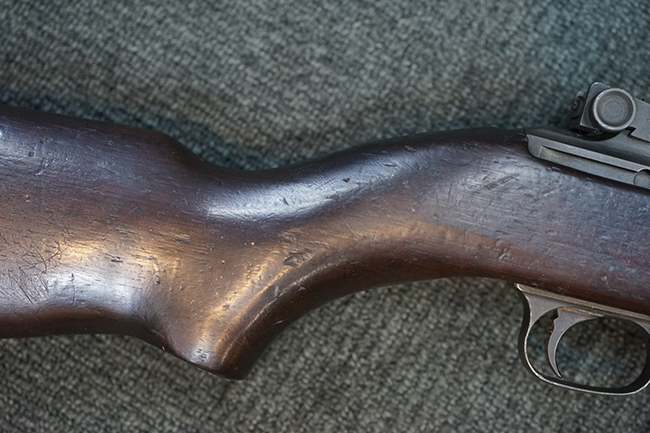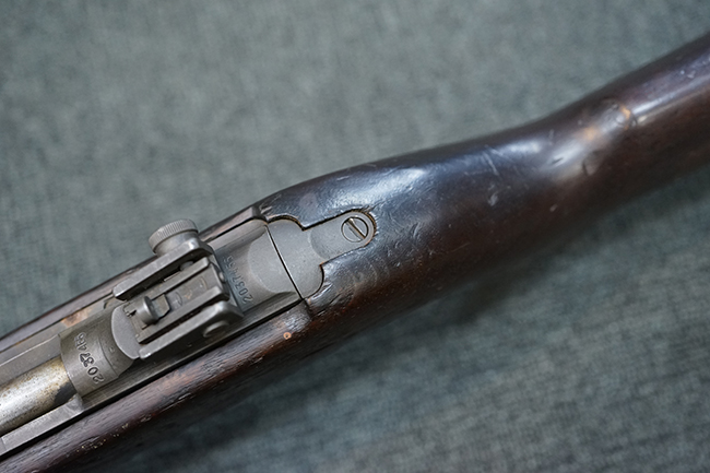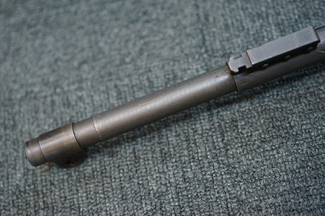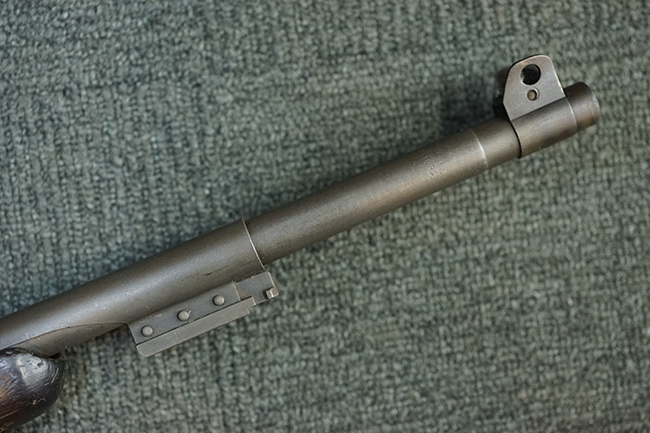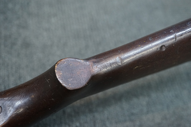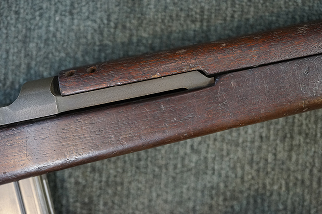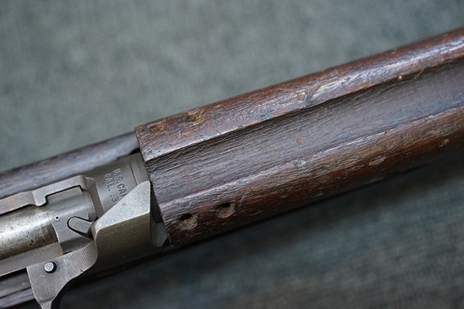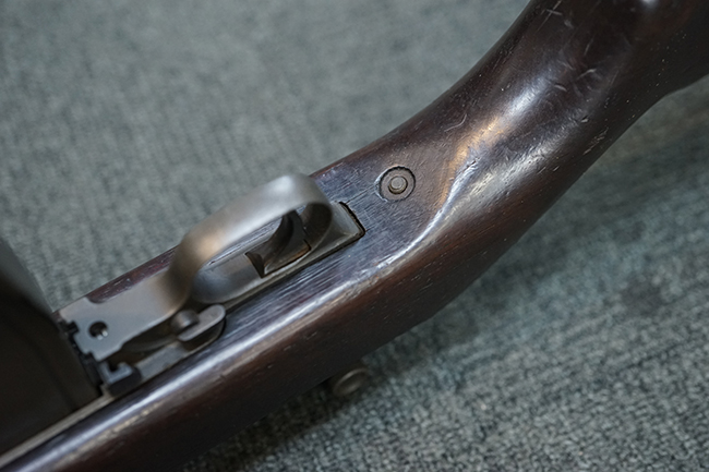 本品は全体に適度な使用感が付いた状態で、機関部や銃身といった金属部は再仕上の正面処理に若干の打ち傷や擦れ、経年による褪色の他、僅かな表面錆痕が見受けられるものの、全体としては目立った欠損等は見られず、概ねしっかりとした状態が保たれています。 銃床やハンドガードといった木部についても、やや打ち傷や線傷が見受けられるものの、こちらも現状大きな破損や欠損等は見受けられません。 アッパー・ハンドガードと銃床の色味は概ねマッチしています。 木部にはやや艶のある仕上げが施されています。 アッパー・ハンドガードの取り付けにほんのわずかに遊びが見られますが、固定自体はしっかりとしています。 傷み易いバット・プレート部については、機関部とコンディションが揃っており、現状大きな変形等は見受けられません。