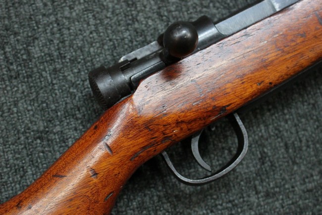 トリガーテンションのある、ボルトの先端と下半分を切除して、ボルト・ハンドルを閉じた状態で溶接固定した新加工品です。 (AW)