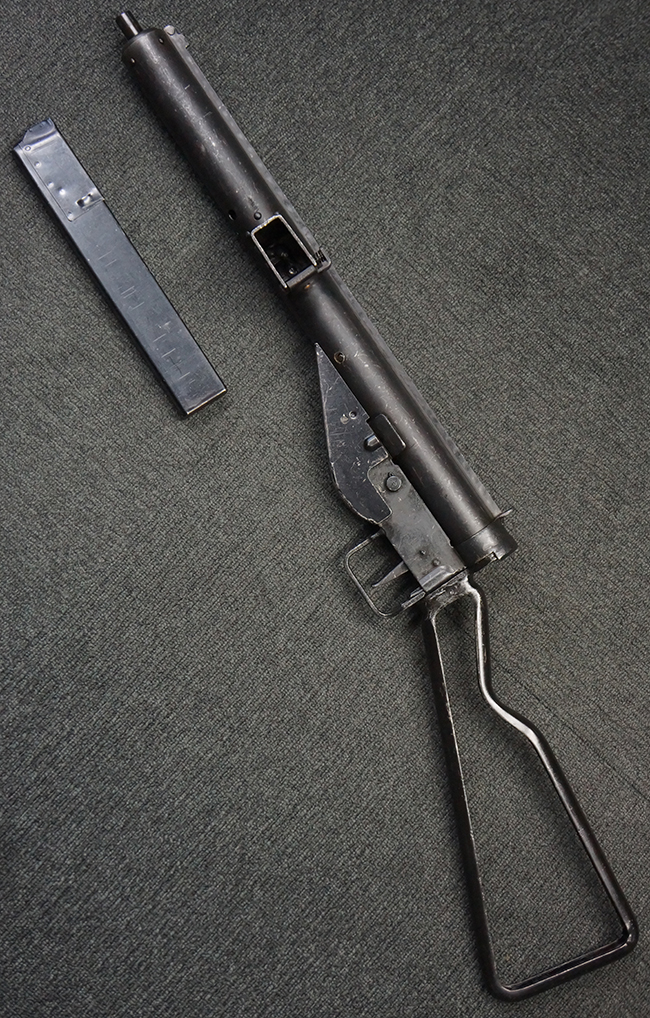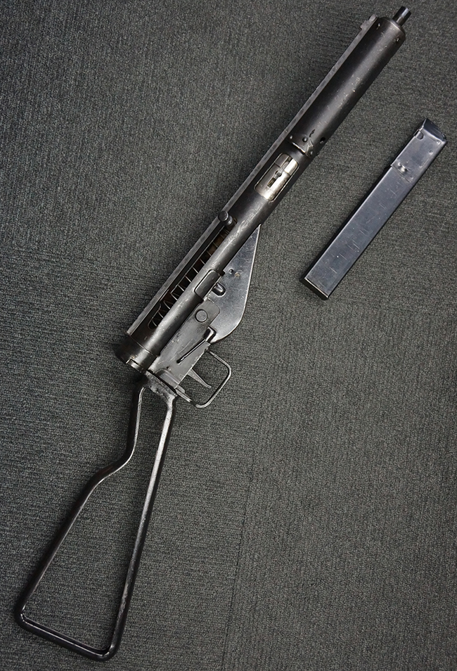 第二次世界大戦中に英軍が使用した、9mmパラベラム弾を使用する極めて生産性に優れた短機関銃です。