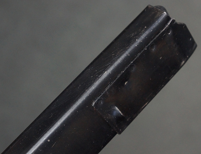 本品は全体にやや打ち傷や擦れの他、一部仕上げの落ちている箇所が見られるものの、目立った欠損や変形等は見られず、概ねしっかりとした状態が保たれています。 ストックの取り付けについても、がたつきなどは比較的少なくなっています。 マガジンの着脱については問題なく行う事が可能です。 マガジンは取り付けにやや遊びが見られますが、固定自体はしっかりとしています。 付属のマガジンについても、若干の小傷や擦れが見られますが、現状大きな凹みや変形等は見られません。 尚、マガジン・スプリングは入っています。