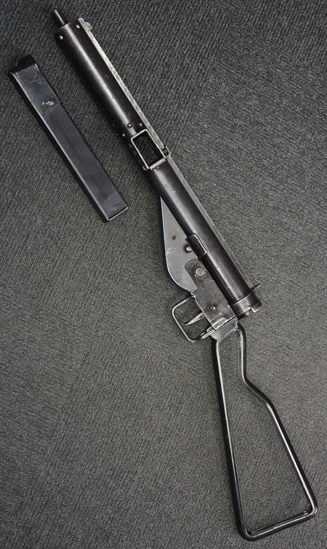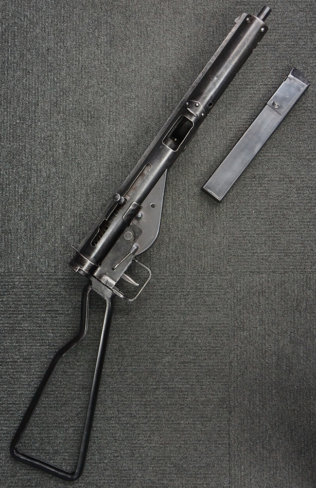 第二次世界大戦中に英軍が使用した、9mmパラベラム弾を使用する極めて生産性に優れた短機関銃です。