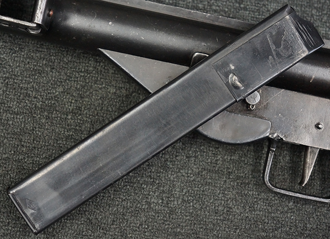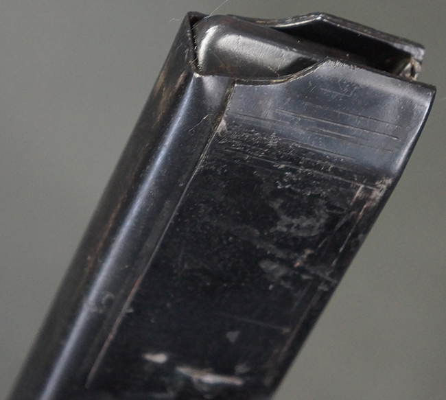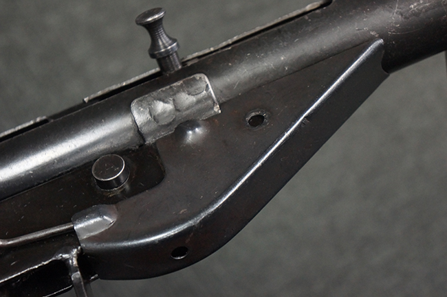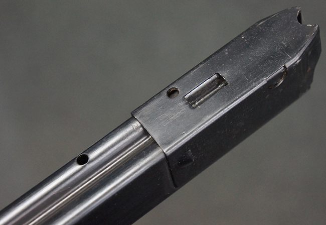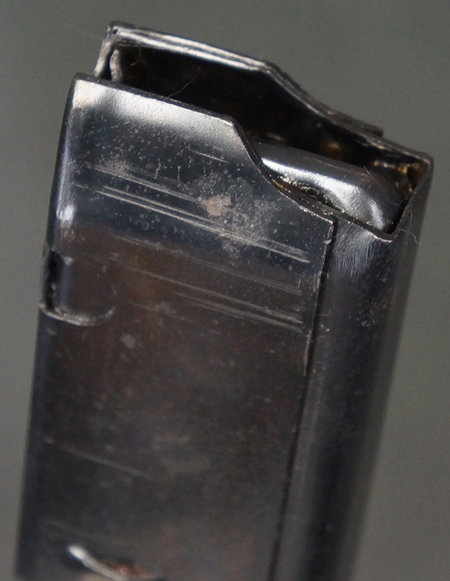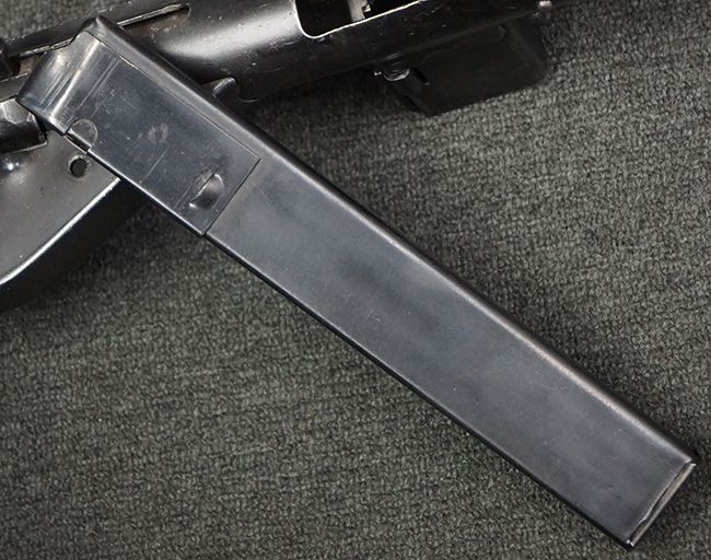 本品は全体にやや打ち傷や擦れの他、経年による褪色や一部仕上げの落ちている箇所が見られるものの、目立った欠損や変形等は見られず、概ねしっかりとした状態が保たれています。 ストックの取り付けについても、がたつきは殆ど見られません。 マガジンの着脱については問題なく行う事が可能です。 マガジンは取り付けにやや遊びが見られますが、固定自体はしっかりとしています。 付属のマガジンについては、着脱時に付いた若干のアタリや若干の朽ち込み錆痕が見られるものの、現状大きな凹みや変形等は見られません。 尚、マガジン・スプリングは入っています。