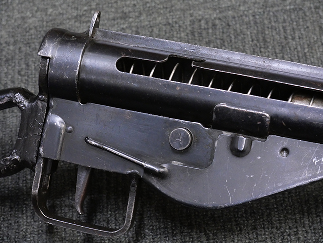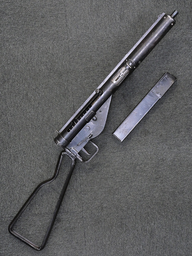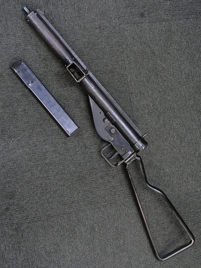 第二次世界大戦中に英軍が使用した、9mmパラベラム弾を使用する極めて生産性に優れた短機関銃です。