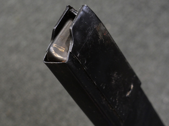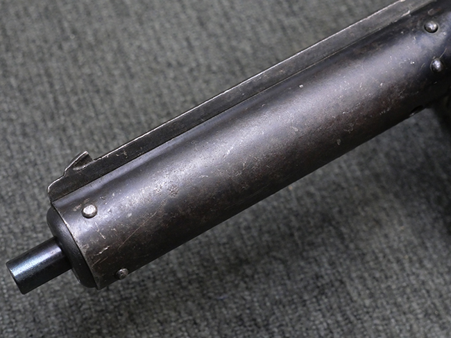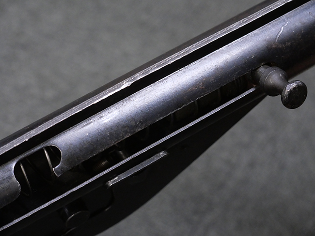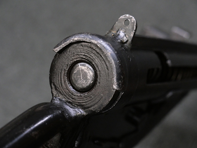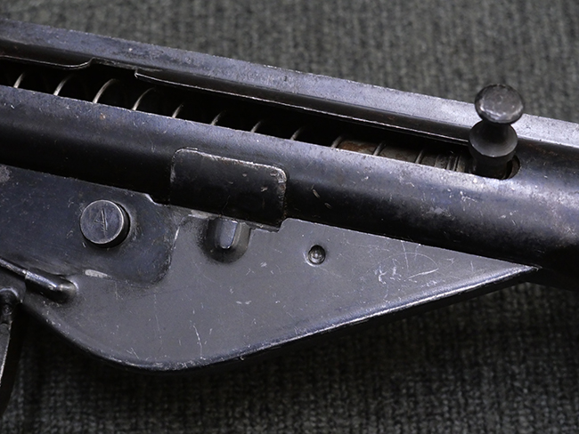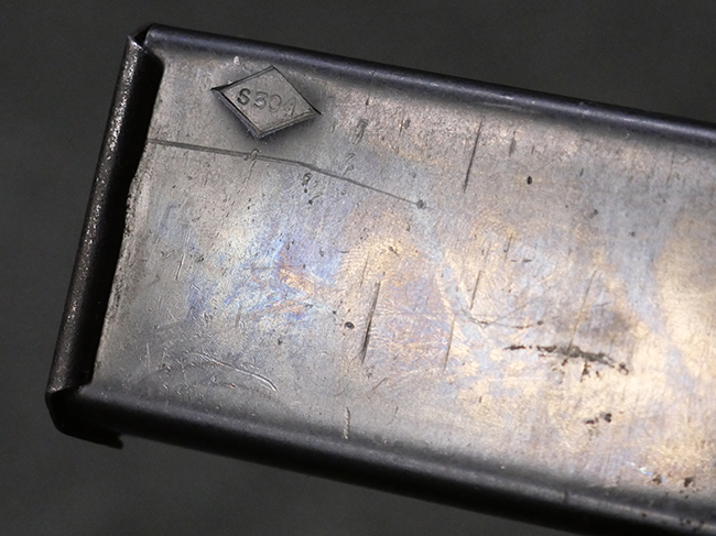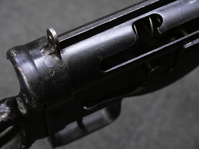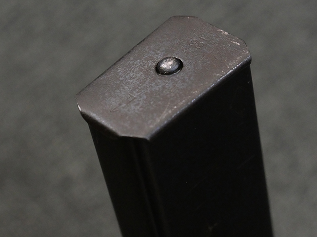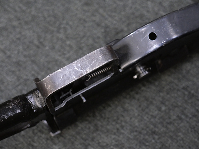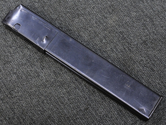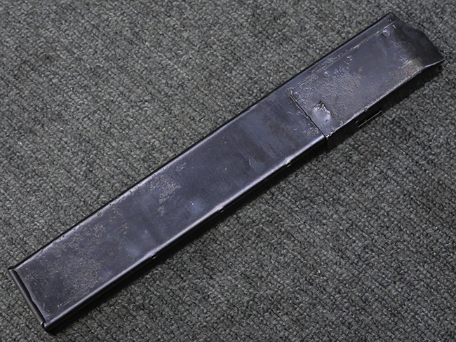 本品の金属部には全体にやや打ち傷や擦れが散見される他、一部表面仕上げが薄くなっている箇所が見られるものの、目立った欠損や変形等は見られず、概ねしっかりとした状態が保たれています。 ストックの取り付けに関してもガタつきは殆ど見られません。 マガジンの着脱については問題なく行う事が可能です。 マガジンは取り付けにやや遊びが見られますが、固定自体はしっかりとしています。 付属のマガジンについても、若干の小傷や擦れ、表面錆痕が見られますが、現状大きな凹みや変形等は見られません。 尚、マガジン・スプリングは入っています。