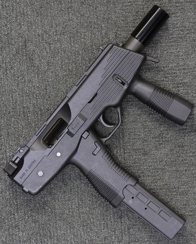 オーストリアのステアー (シュタイヤー・マンリッヒャー) 社が1990年代初頭に発表した警察・特殊部隊向けの短機関銃で、樹脂製部品を多用した軽量な作りとなっています。