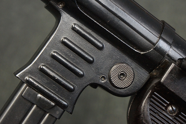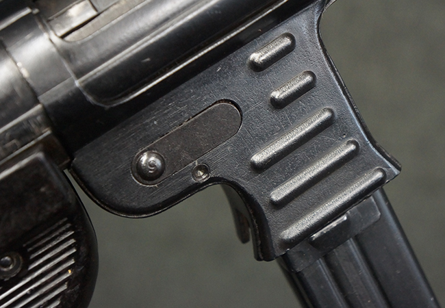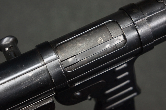 MP40のバリエーションの内、1941~1942年頃にエルマ社、ステアー社、ハーネル社で製造されたタイプは、マガジン・ハウジングの両側面に5本の強化リブが追加されているのが特徴で、これ以降に製造されたタイプでは全てマガジン・ハウジング表面にリブが追加されるようになりました。 グリップ・フレームは初期型と同様に前後二分割でプレス成型したものを溶接で組み合わせて製造されています。コッキング・ハンドルについては、1942年6月以降フォワード・ロック・セーフティ機能を備えたタイプの生産が本格的に開始された為、セーフティ機能付きのコッキング・ハンドルが付いた個体と初期型のフック型コッキング・ハンドルが付いた個体の両方が存在します。