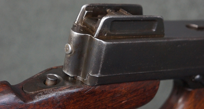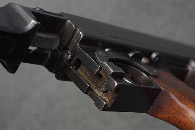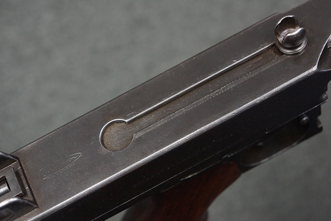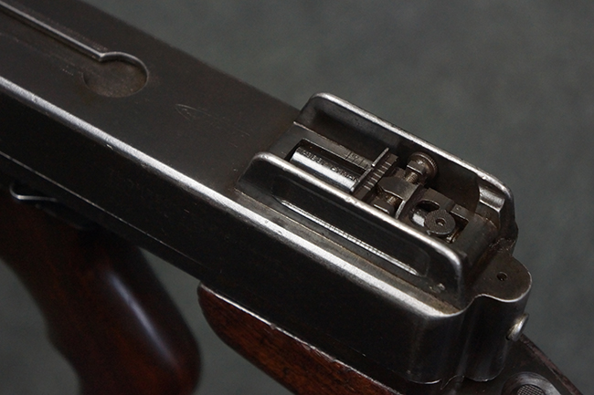 その後、トンプソンM1928A1短機関銃の製造コストを下げるために各部を改良したトンプソンM1短機関銃の他、さらに撃針の固定化等の追加改良を加えたM1A1といったモデルも製造されました。 M1A1ではリア・サイトの変形を防止する為、三角形のリア・サイト・ガードが標準装備されるようになりました。また、元々はM1として製造された物の中にも、後にM1A1に準じた改修を受けてA1刻印を追加された個体も存在します。