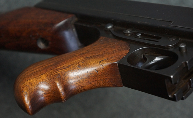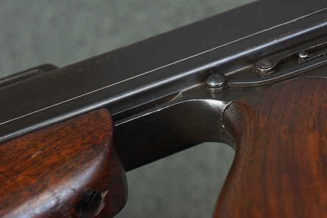 このような歴史からギャング映画や戦争映画で目にする有名なサブ・マシンガンであり、弊社でも人気の高い銃の1つです。【本個体の説明】
