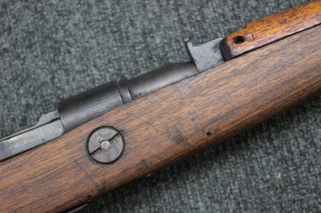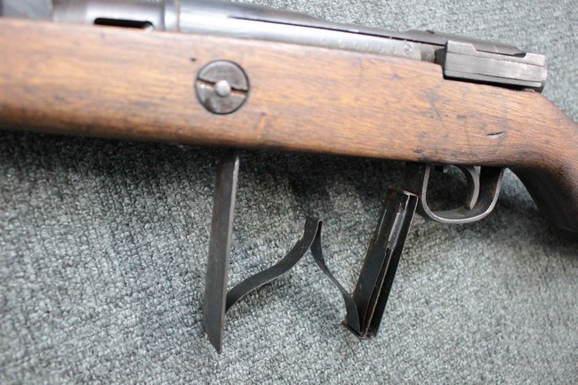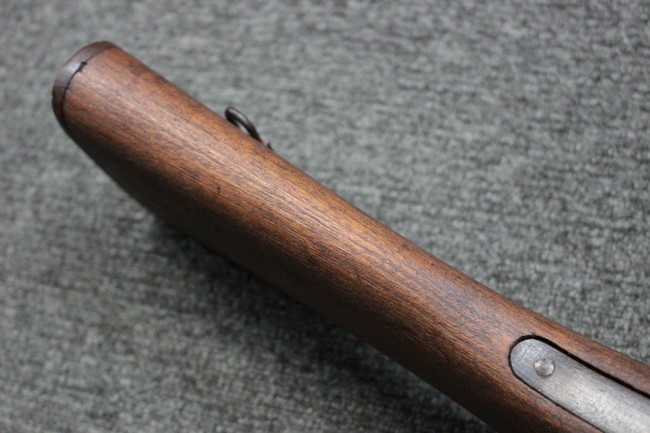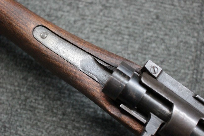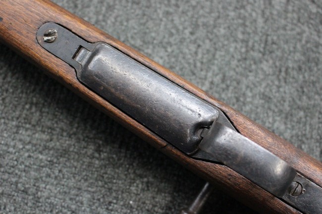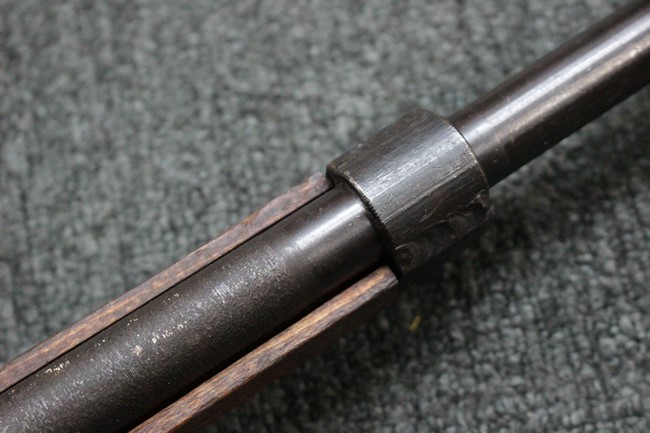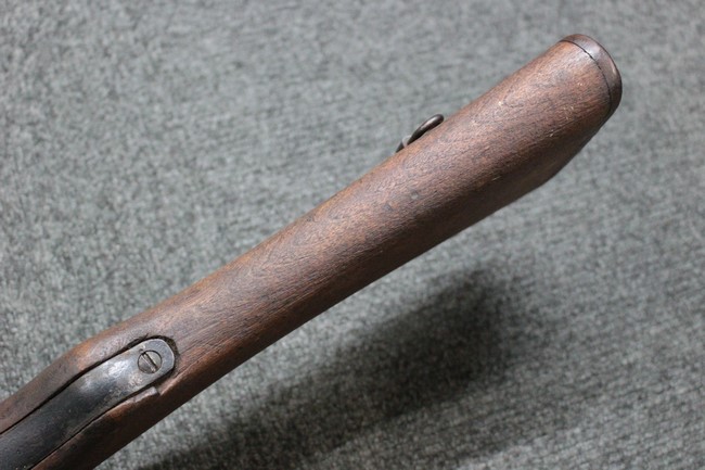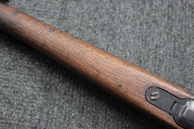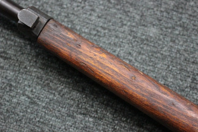 本品の銃身や機関部といった金属部は、若干の小傷や擦れ、経年による褪色や一部表面錆等は見受けられますが、大きな欠損等は見られず、製造された時代を考慮すると概ね良好な状態が保たれています。 木部についても、やや打ち傷や線傷、グリップ下部右に欠け等は散見されますが、現状大きな破損等は見受けられず、全体にオリジナルの仕上げが保たれています。 傷み易い床尾板については、角の部分にやや擦れが見受けられますが、こちらも目立った欠けは現状見受けられません。 旧軍特有の銃床上下の継ぎ目については一見単材のようにキッチリと合わさっており、隙間は見受けられません。 末期型のため、銃床前部は当初から取り付けに遊びが見られます。 弾倉底板の開閉については問題なく行う事が可能です。