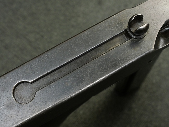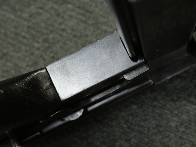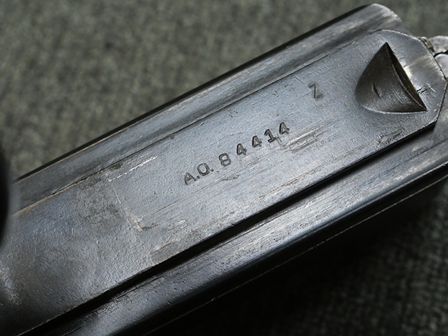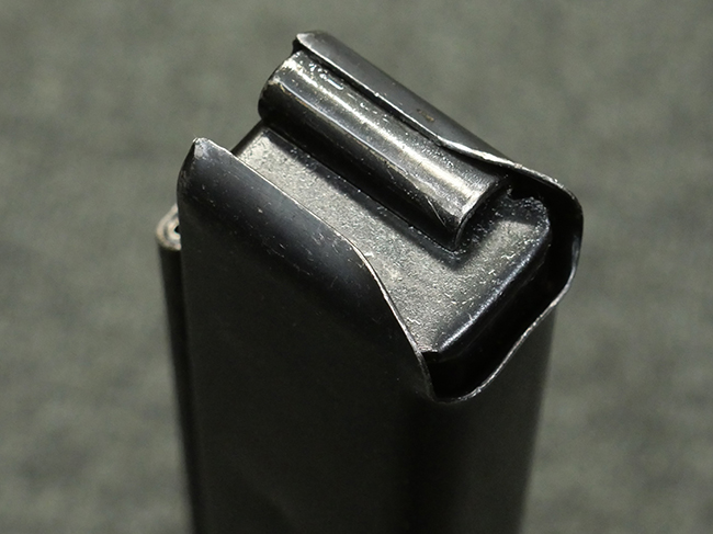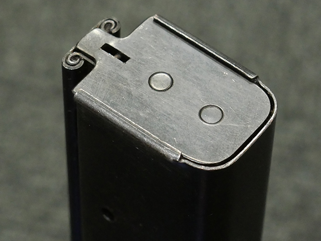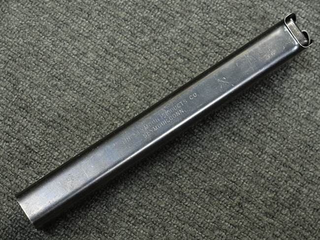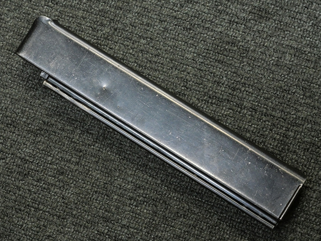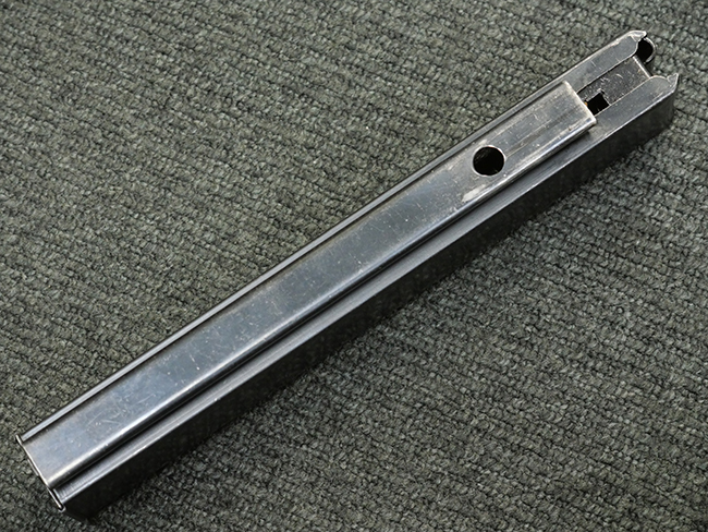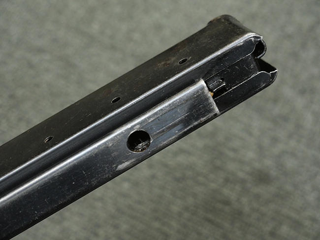 付属のマガジンはSEYMOUR製の30連タイプで、僅かな擦れや表面錆痕等が見れる他、右側面に一カ所打ち傷が見られるものの、全体的に表面仕上げが残った概ねしっかりとした状態が保たれています。 尚、マガジン・スプリングは入っています。