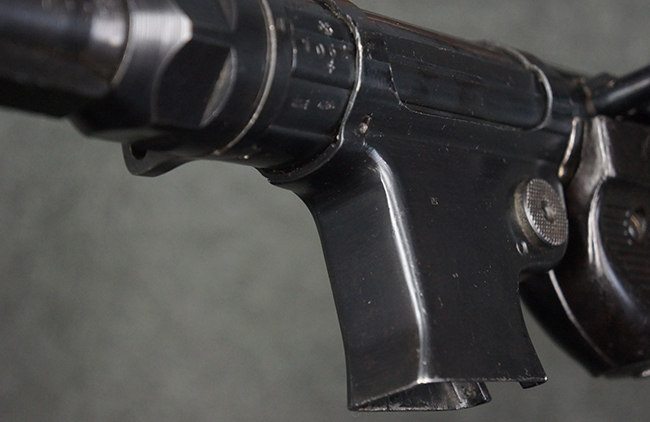 MP40のバリエーションの内、1941~1942年頃にエルマ社、ステアー社、ハーネル社で製造されたタイプは、マガジン・ハウジングの両側面に5本の強化リブが追加されているのが特徴で、これ以降に製造されたタイプでは全てマガジン・ハウジング表面にリブが追加されるようになりました。 グリップ・フレームは初期型と同様に前後二分割でプレス成型したものを溶接で組み合わせて製造されています。コッキング・ハンドルについては、1942年6月以降フォワード・ロック・セーフティ機能を備えたタイプの生産が本格的に開始された為、セーフティ機能付きのコッキング・ハンドルが付いた個体と初期型のフック型コッキング・ハンドルが付いた個体の両方が存在します。