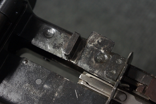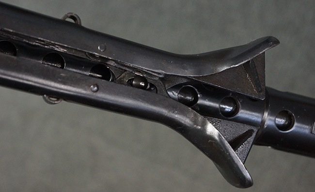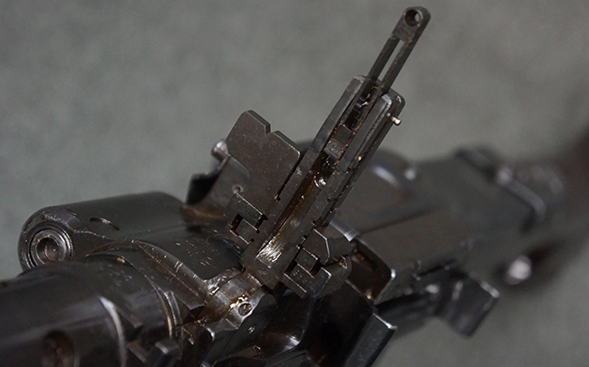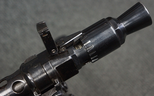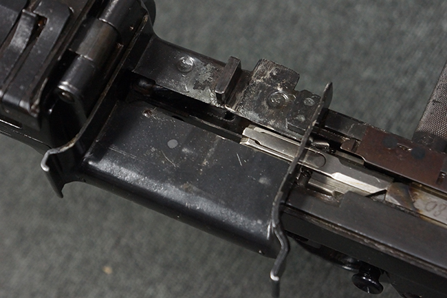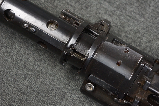 二脚の開度調整や折り畳み時のロック機能については問題ありません。 フィード・カバーの開閉やフロント・サイトの起倒、リア・サイトの調整操作、排莢孔カバーの開閉については問題なく行う事が可能です。 セーフティ・レバーの切り替えも可能ですが、トリガーとの連動はありません。 バレル・ジャケットの回転/分割についてはスムーズに行う事が可能です。