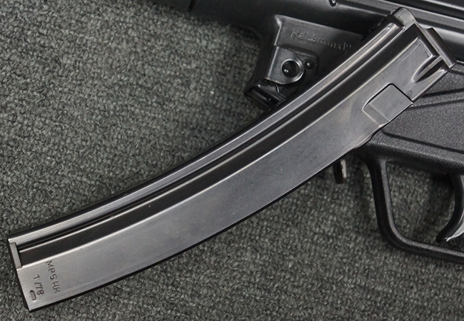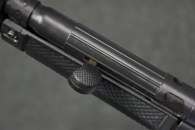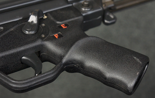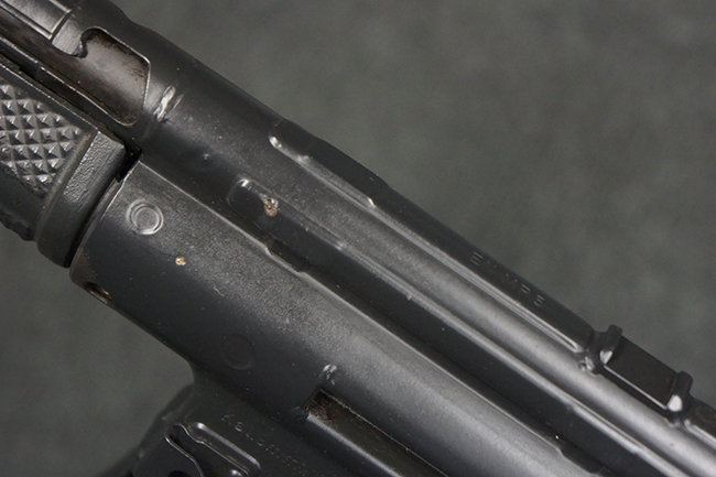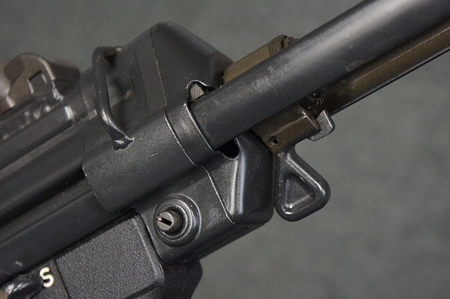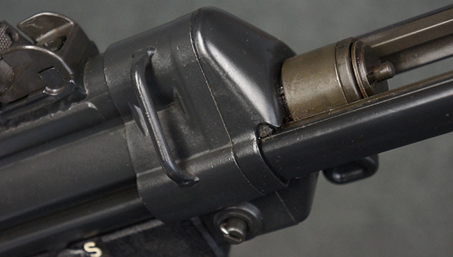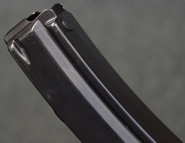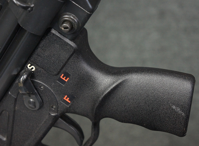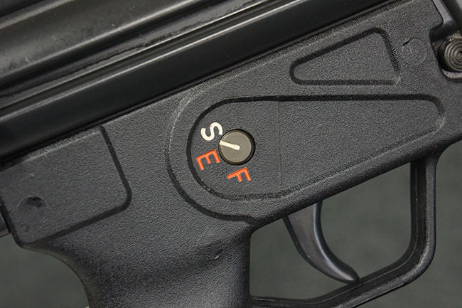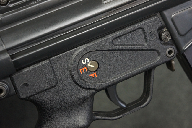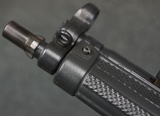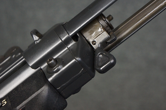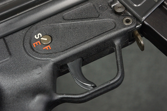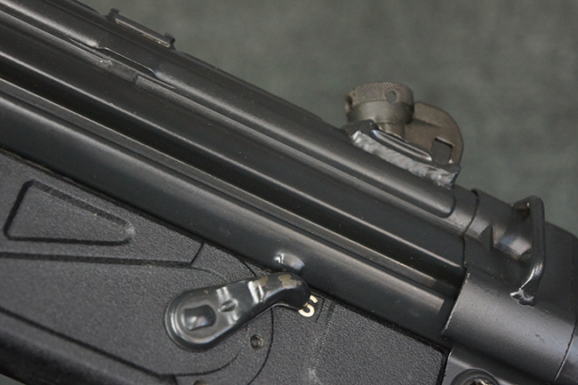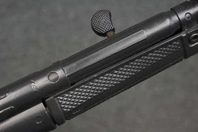 本品は使用感も比較的少なく、金属部は若干の打ち傷や擦れ、一部表面仕上げの剥落が見られるものの、目立った欠損や錆などは見受けられず、オリジナルの仕上げも大部分に残っています。 ハンドガードやトリガー・ハウジングといった樹脂部についても、若干の打ち傷や擦れは見られるものの、概ね良好な状態が保たれています。 マガジンの着脱やリア・サイトの調整、ストックの伸縮操作については問題なく行う事が可能です。 セレクターの切り替えについても問題なく、セレクター・ポジションに応じてトリガーの引きしろが変化し、安全位置でトリガーがロックされます。 付属のマガジンは「MP5 HK 1/78」の刻印が入ったHK社製で、若干の小傷や擦れを除いて目立った凹みや変形等は見受けられません。 尚、マガジン・スプリングは入っています。