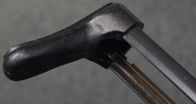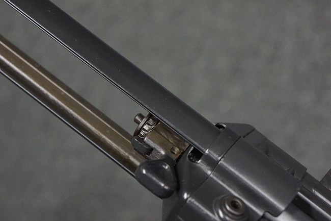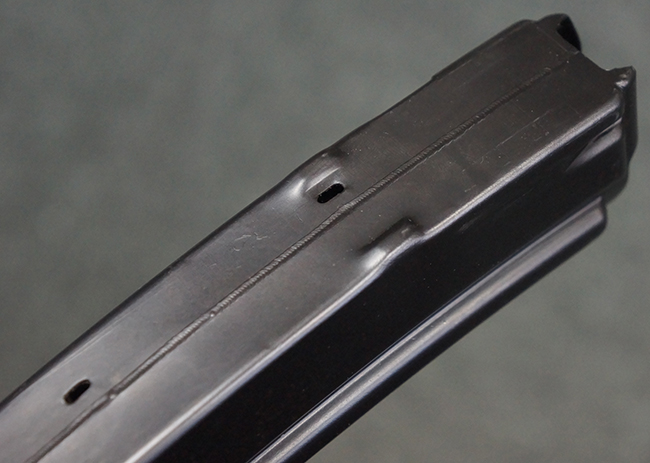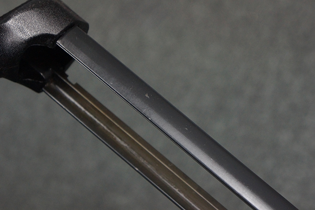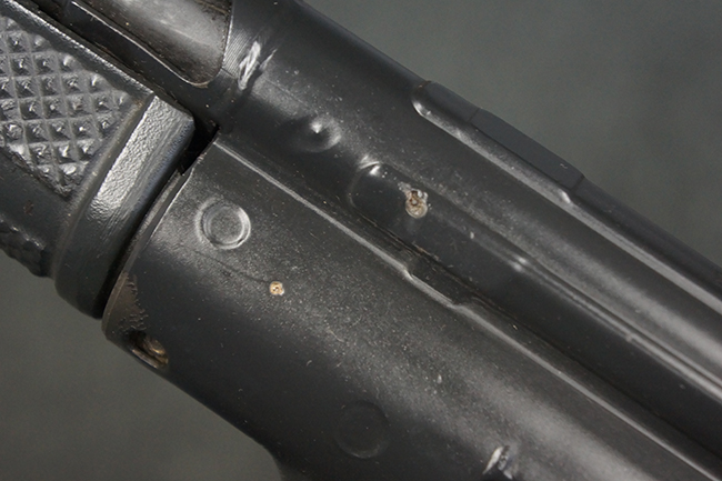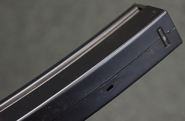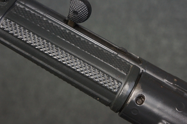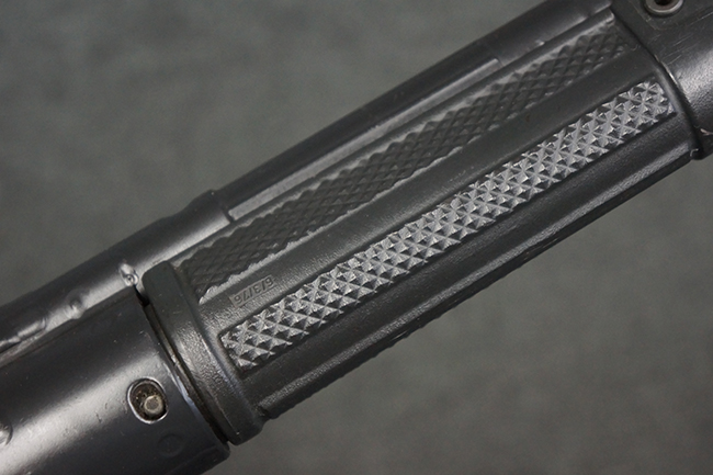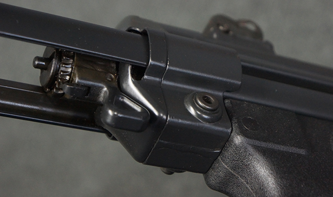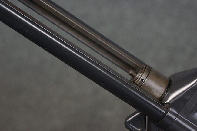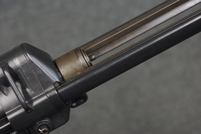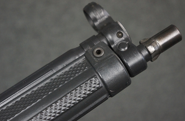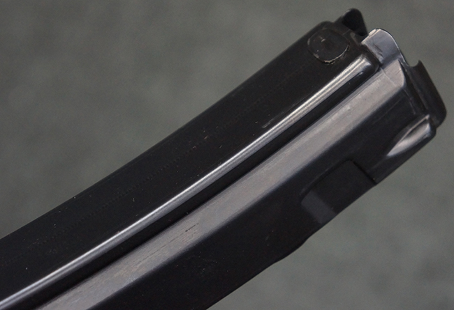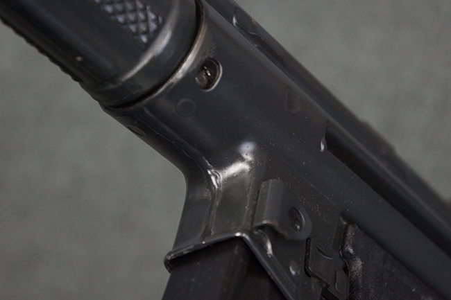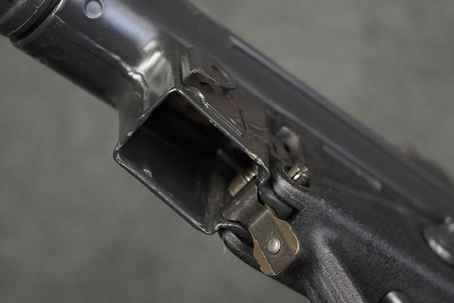 本品は使用感も比較的少なく、金属部は若干の打ち傷や擦れ、一部表面仕上げの剥落が見られるものの、目立った欠損や錆などは見受けられず、オリジナルの仕上げも大部分に残っています。 ハンドガードやトリガー・ハウジングといった樹脂部についても、若干の打ち傷や擦れは見られるものの、概ね良好な状態が保たれています。 マガジンの着脱やリア・サイトの調整、ストックの伸縮操作については問題なく行う事が可能です。 セレクターの切り替えについても問題なく、セレクター・ポジションに応じてトリガーの引きしろが変化し、安全位置でトリガーがロックされます。 付属のマガジンは「MP5 HK 1/78」の刻印が入ったHK社製で、若干の小傷や擦れを除いて目立った凹みや変形等は見受けられません。 尚、マガジン・スプリングは入っています。
