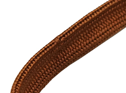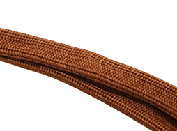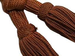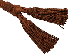 昭和12年に制定された太刀型軍刀と合わせて制式化された、平織づくりのの刀緒です。形や見た目は陸軍の昭和9年制式の刀緒とほぼ変わりがありませんが、階級別の色の差異はなく表裏共に茶色一色となっています。