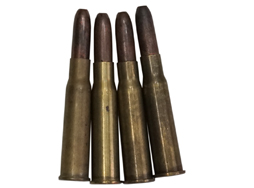 - アイテム説明二十二年式村田連発銃に使用された実包(8mm×53R弾)のダミーカートです。 弾頭や薬莢には経年に伴うくすみや汚れが見受けられます。 どの個体にも薬莢の首部分に大小の亀裂が生じており、このため弾頭の固定が若干緩くなっています。 弾頭は薬莢から手で抜き取ることが出来ますが、強く振る程度では勝手に脱落することはありません。 管状弾倉を使用する二十二年式ならではの特徴的な平頭弾頭や雷管周辺の構造など、希少性・資料性の高いダミーカートとなっています。 雷管に打撃痕のある、装薬等一切入っていない安全品です。 (TK)