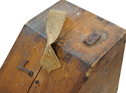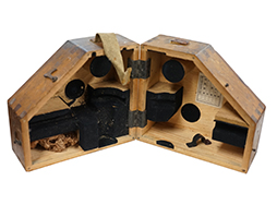 収納箱も経年があり、すれや小傷が全体に散見されますが、内側のクッションなどもしっかりとしています。 キャンバス製も持ち手が1か所断裂してしまっていますが、それ以外に目立った破損は見受けられません。 旧軍大型火砲の照準器は現存数が他の国に比べて非常に少ないので資料としては貴重な品です。