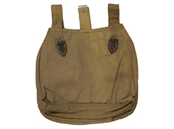 - アイテム説明帝政ドイツ時代の雑嚢を改良し、1931年にドイツ軍で採用されたM31雑嚢です。 M31雑嚢には時代ごとに細かなバリエーションが見られますが、本品はベルト・ループ部の補強革が省略された1941年以降の中期型です。 雑嚢を構成する生地が前後・左右で計4枚使用されていることから、裁断方法が簡略化される1943年以前に生産された仕様と思われます。 また、中期型ではボタンが鉄製に変更されていますが、本個体は計5個あるボタンのすべてがアルミ製となっています。