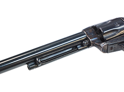 極めて精巧に造られた品ですが元々適合実包もなく、当初から射撃用として作られた品ではありません。 また、国内輸入にあたり無可動加工が施されており、銃身が完全に閉鎖された上で、ハンマーを含む撃発機構は外観からは一切見えない部分で固定されており、全く動きません。 更にボルト (シリンダー・ストップ) やシリンダー・ハンド等の内部部品は取り外されていますのでシリンダーは回転しますがストップしません。 また、シリンダー内も閉塞されていますので、ダミーカートなども装填できません。