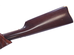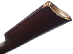 しかしながら精度については実銃並で、各パーツの合わせはピッタリと隙間なく、ネジ1本やバネ1個まで正確にスケール・ダウンして製作されています。 また、金属仕上げや木製グリップ、ストックについても美しく仕上げられており、鋼鉄ならではのケース・ハードゥン仕上げのフレームとブルー仕上げの銃身の組み合わせは見事としか言いようがありません。 グリップも木目の細かい木材を使用して丁寧に加工されており、グリップのカーブはバック・ストラップとぴったりに仕上げられています。 金属部や木部は僅かな小傷や擦れを除いて大きなダメージは見受けられず、総じて良好な状態が保たれています。