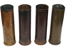 - アイテム説明第二次世界大戦からベトナム戦争にかけて米軍を中心に使用されたM101 105mm榴弾砲の薬莢です。 個体によってコンディションが異なり、凹みや表面に錆や朽ち込みが見られる個体、磨き込まれている個体など状態にやや差が見られます。 どの個体も薬莢は表面に小傷が散見されるほか、小さな凹みが所々に見受けられますが、シルエットは崩れていません。 弾頭を装着するネック部分の変形具合は個体によって異なりますが、総じて割れなどの損傷はありません。 刻印にもバリエーションが見られ、1970年代に米軍が使用した個体、1960年代の製造年刻印で、朽ち込みによって製造メーカーの判別が難しいものが混在しています。 販売の際にご指定がない場合は程度の良いものから販売いたします。 雷管に打撃痕のある、薬莢内部に燃焼済みの火管が残っており、装薬等は一切入っていない安全品です。 (TK)