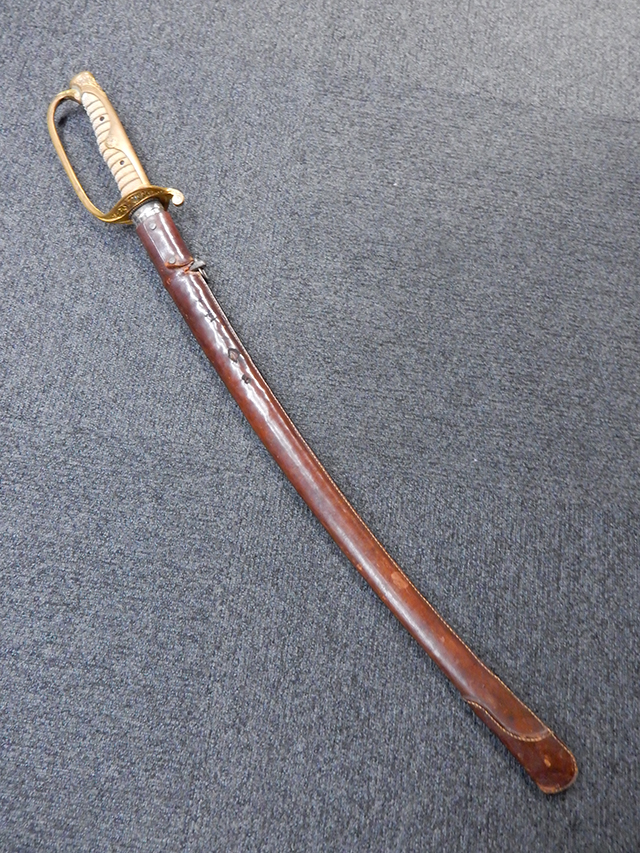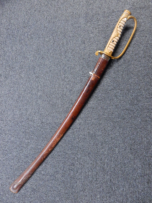 陸軍尉官一環吊旧型軍刀拵 (革鞘覆付)の拵えです。