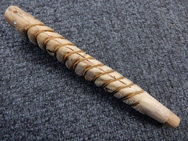 外装全長約90.5cm、柄全長約18.7cm、刃渡り62.3cmの木製刀身(つなぎ)付。 (AW)