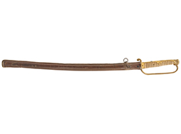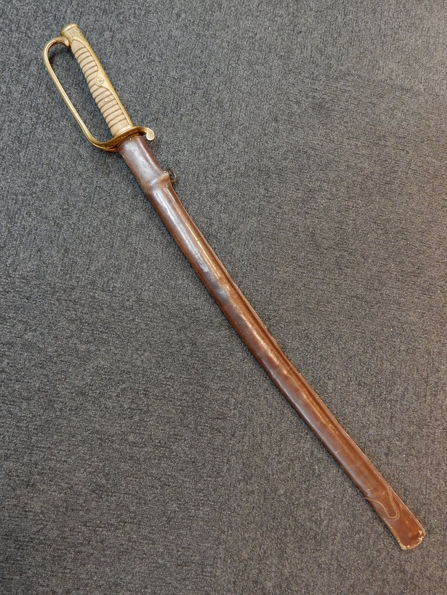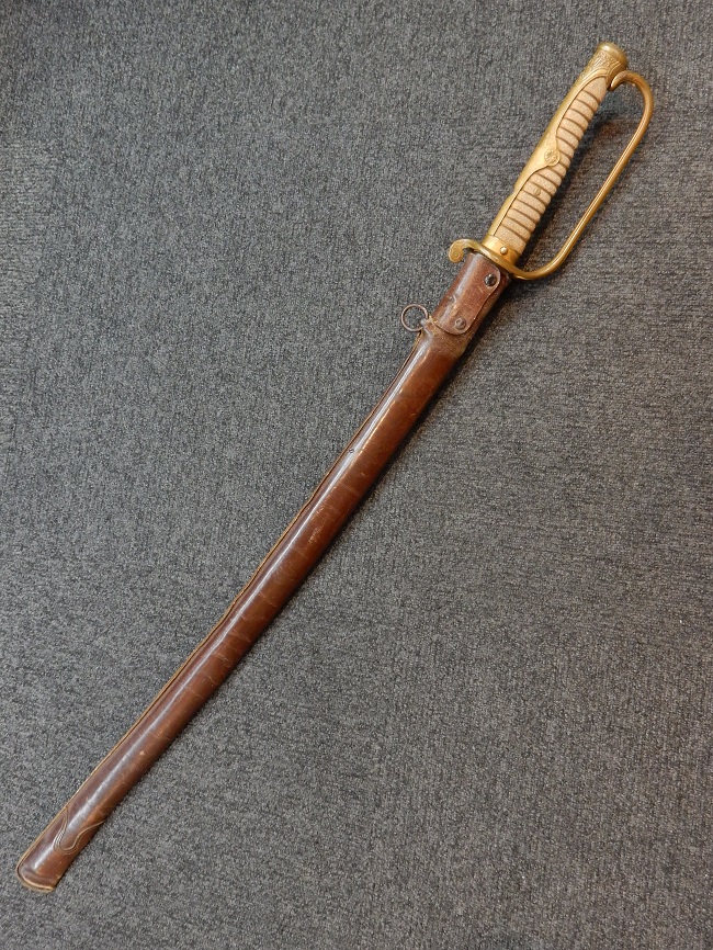 陸軍尉官一環吊旧型軍刀拵 (革覆付、違い鷹の羽紋入)の拵えです。