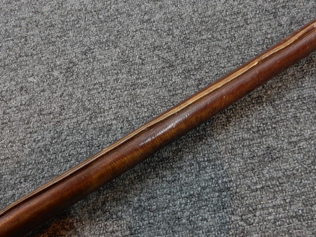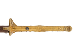 外装全長約102.3cm、柄全長約21.4cm、刃渡り71.2cmの木製刀身(つなぎ)付。 (AW)
