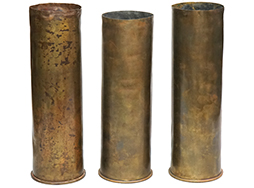 - アイテム説明第二次世界大戦からベトナム戦争にかけて米軍を中心に使用されたM101 105mm榴弾砲のM14 薬莢です。 個体によってコンディションが異なり、凹みや表面が磨き込まれているなどの個体差が見られます。 どの個体も薬莢は表面に小傷が散見されるほか、小さな凹みが所々に見受けられますが、シルエットは崩れていません。 弾頭を装着するネック部分の変形は個体によって異なりますが、割れなどの損傷はありません。 刻印にもバリエーションが見られ、1945年製の米軍の使用した個体、1969年製のカナダの弾薬メーカーIVI(Industries Valcartier Inc,)製が混在しています。 カナダ軍では1950年代からM101 105mm榴弾砲をC1榴弾砲として採用しており、ベトナム戦争期には米軍向けの弾薬を生産していました。 販売の際にご指定がない場合は程度の良いものから販売いたします。 雷管に打撃痕のある、内部の火管が除去され、火薬等の一切入っていない安全品です。 (TK)